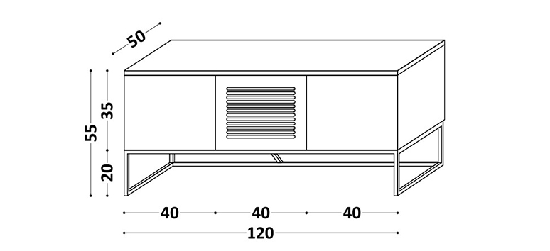2. Modele szafki z trzema frontami: -klapa gładka- klapa z otworami- klapa gładka, 120 x 50 x H 55 cm