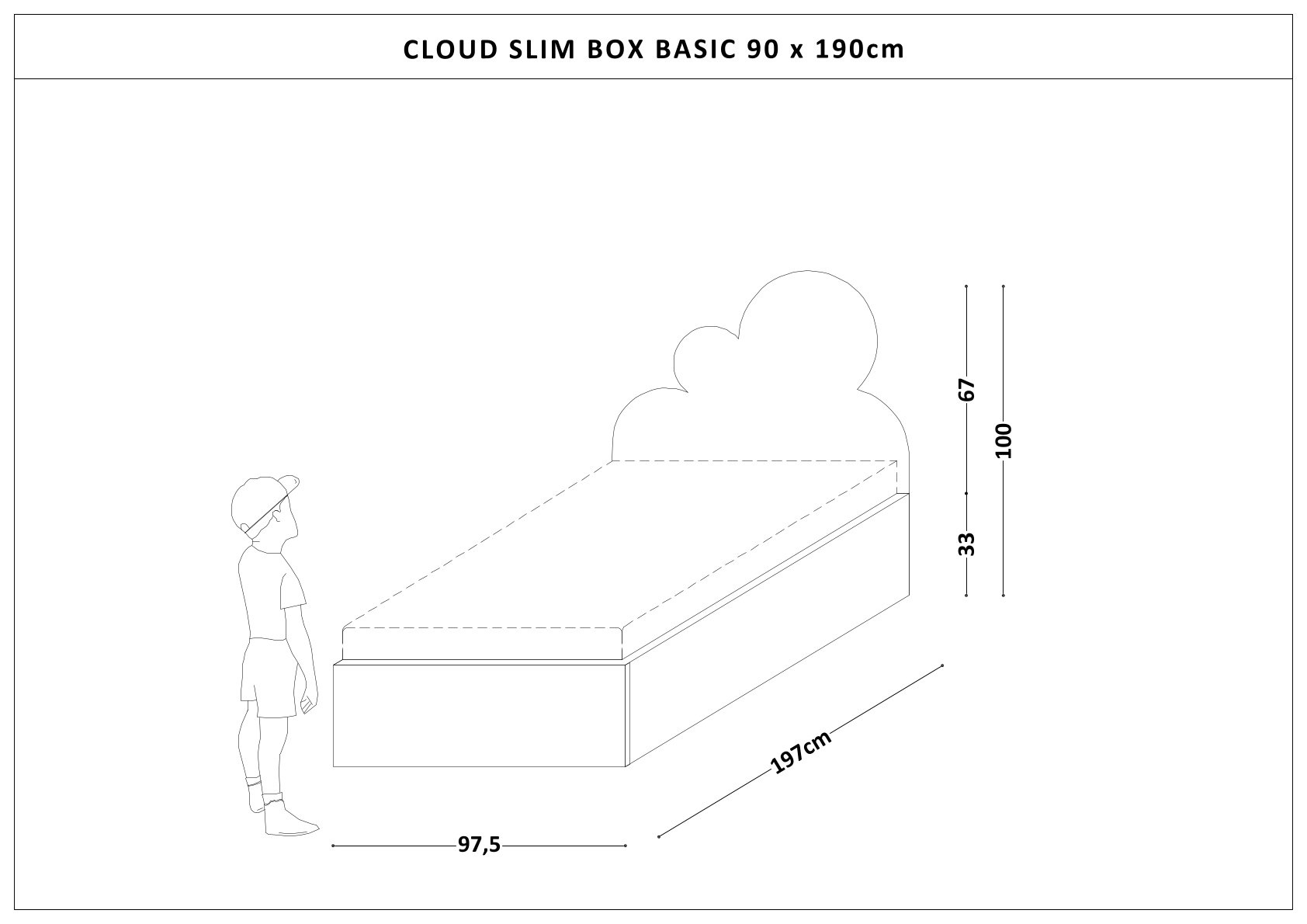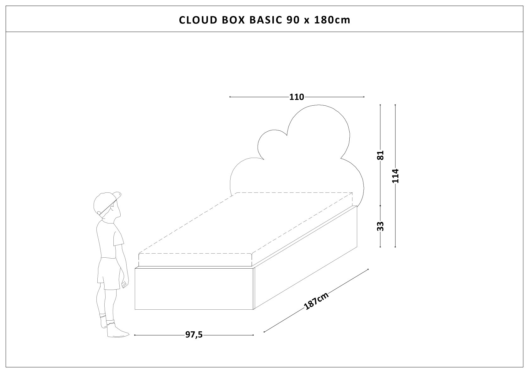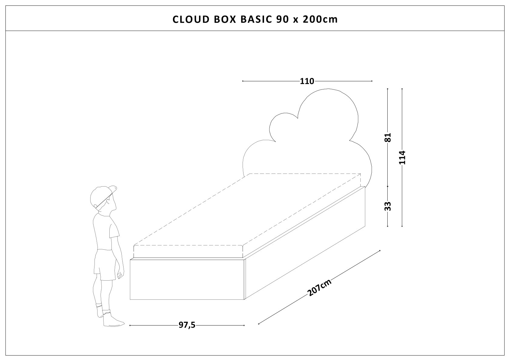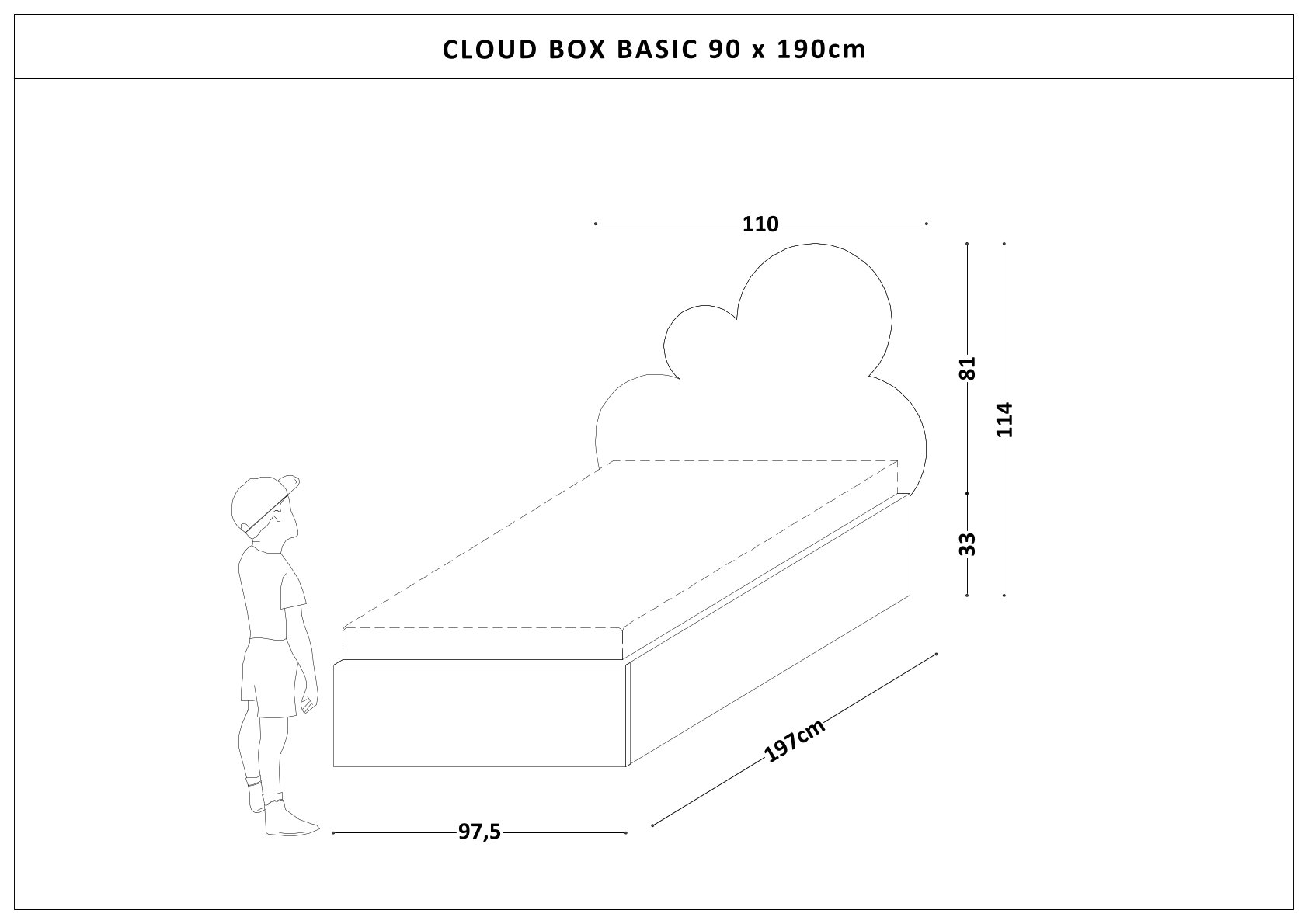 Łóżko dziecięce Cloud Box Basic posiada pojemną, twardą skrzynię pod materacem, która jest idealnym schowkiem na pościel, zabawki czy inne skarby Twojego dziecka. Stelaż łóżka wraz z materacem podnosi się w łatwy i lekki sposób, dzięki czemu nic nie utrudnia dostępu do rzeczy przechowywanych w łóżku. Skrzynia łóżka dostępna jest w wersji nietapicerowanej w wybranym kolorze z szerokiej palety barw Basic.