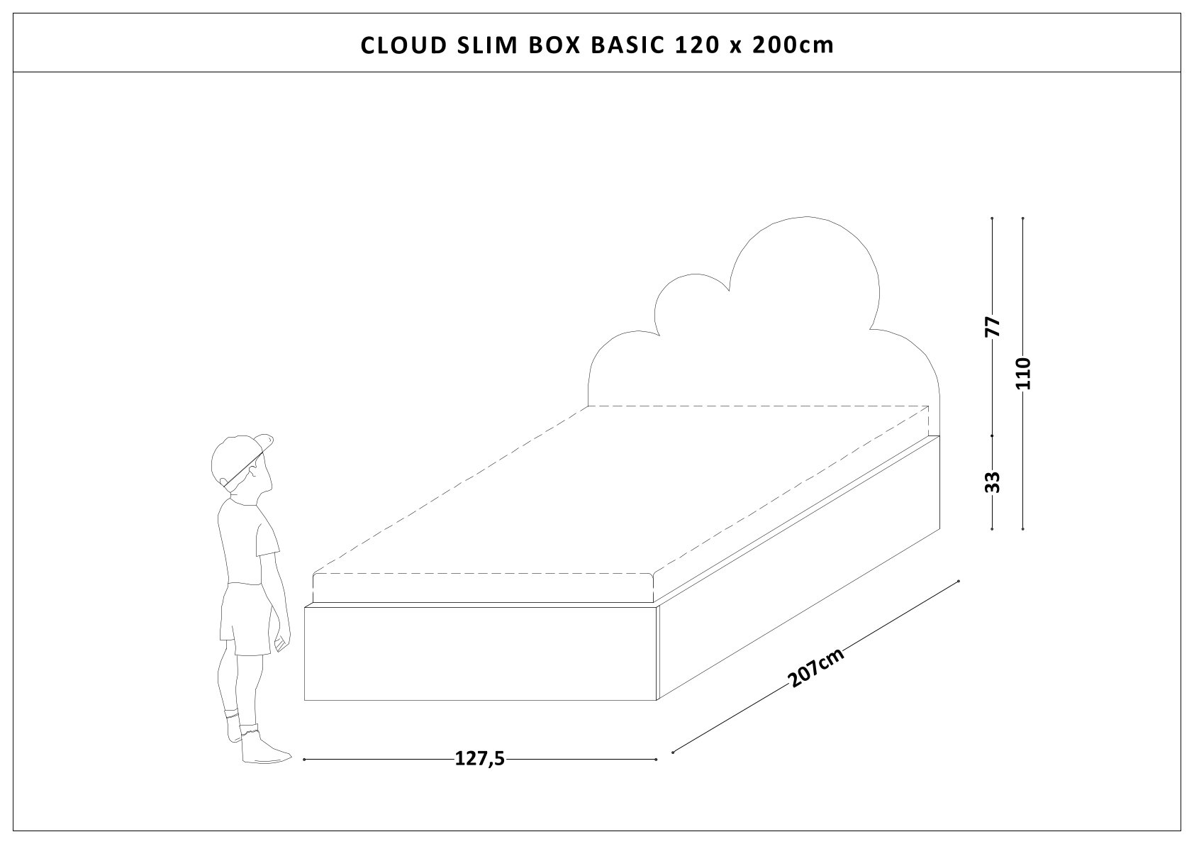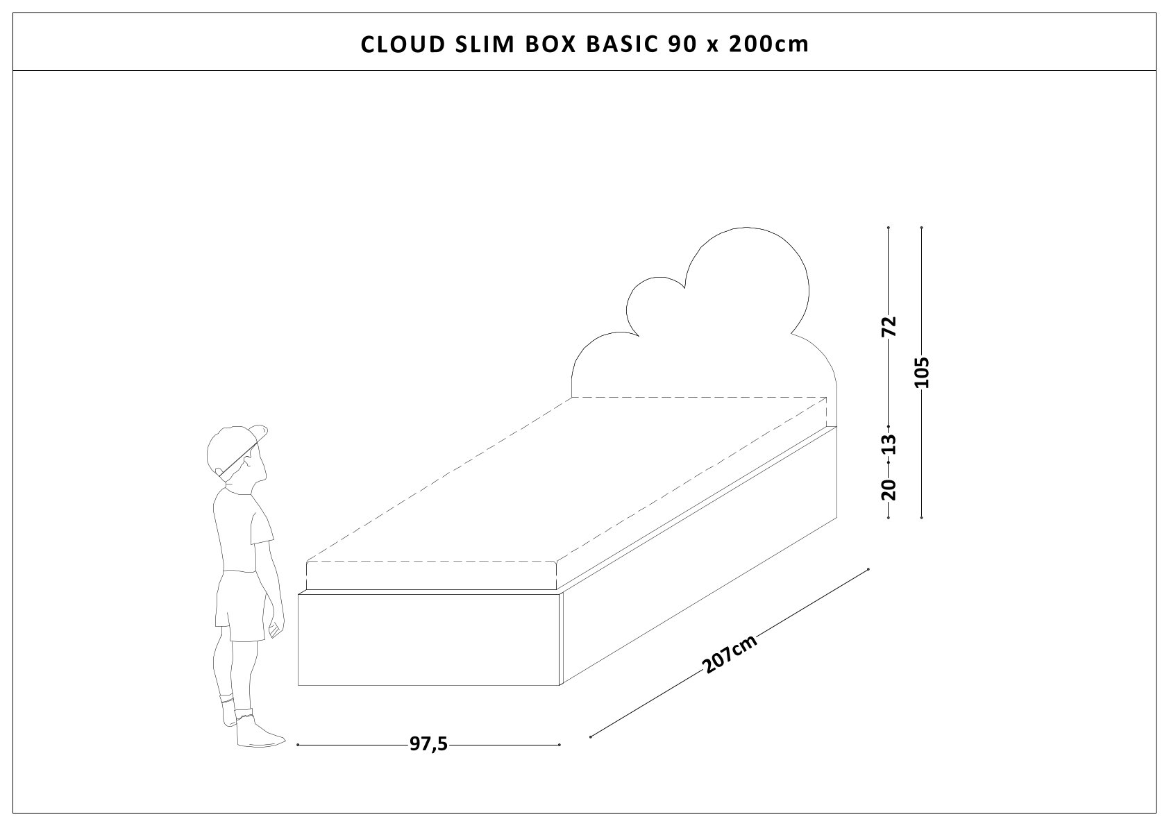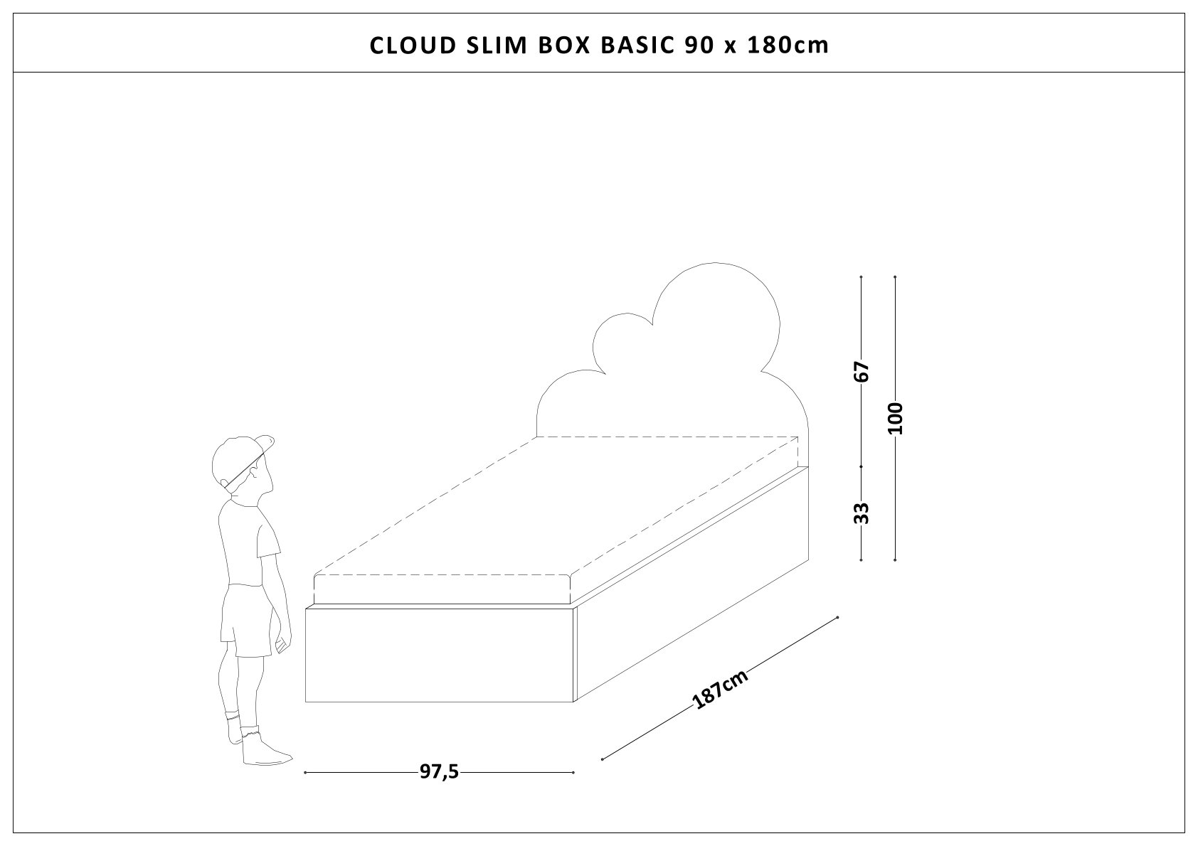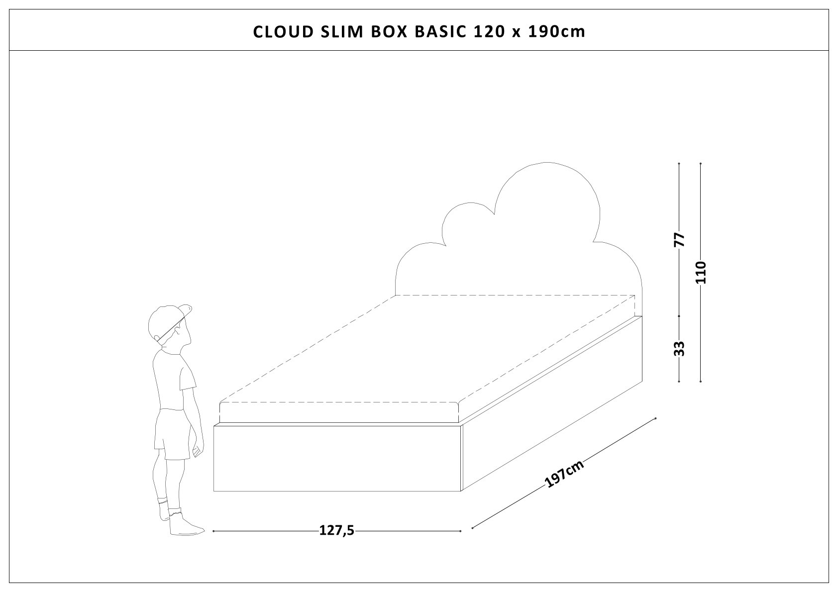 Łóżko dziecięce Cloud Box Basic posiada pojemną, twardą skrzynię pod materacem, która jest idealnym schowkiem na pościel, zabawki czy inne skarby Twojego dziecka. Stelaż łóżka wraz z materacem podnosi się w łatwy i lekki sposób, dzięki czemu nic nie utrudnia dostępu do rzeczy przechowywanych w łóżku. Skrzynia łóżka dostępna jest w wersji nietapicerowanej w wybranym kolorze z szerokiej palety barw Basic.