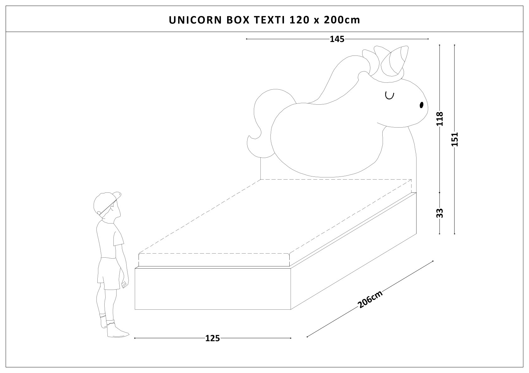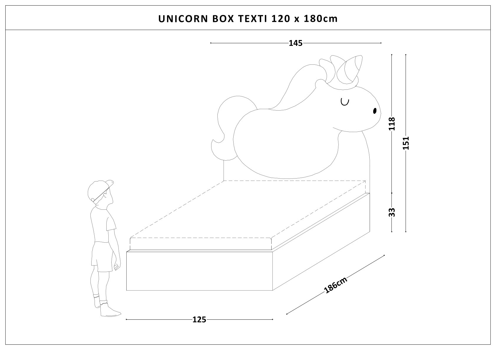 Łóżko jednorożec UNICORN BOX TEXTI