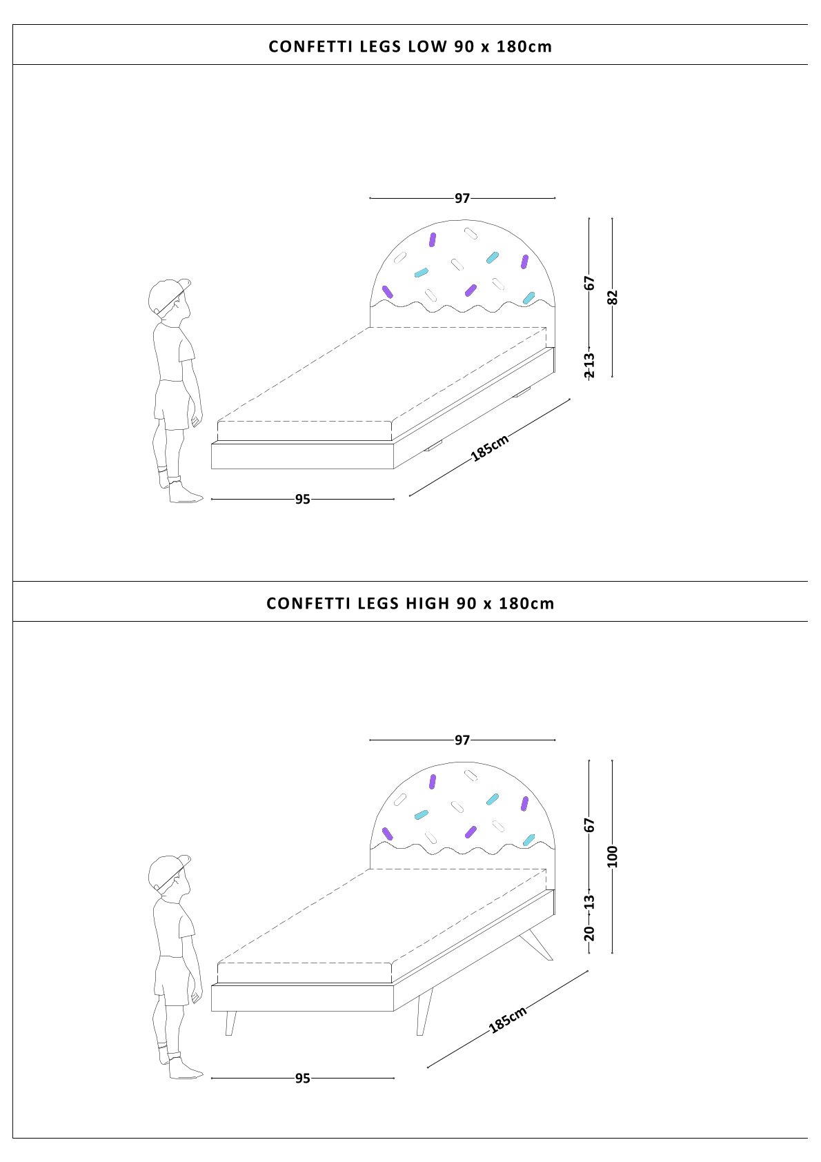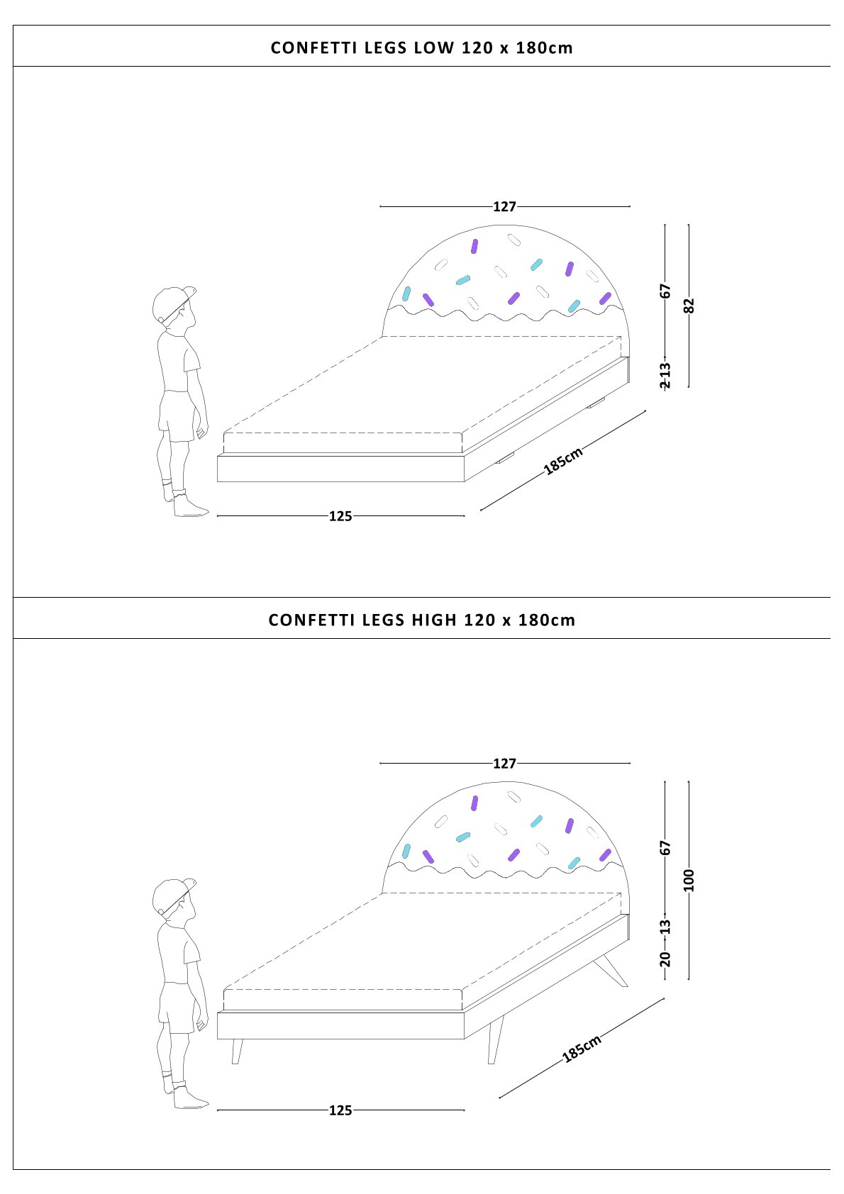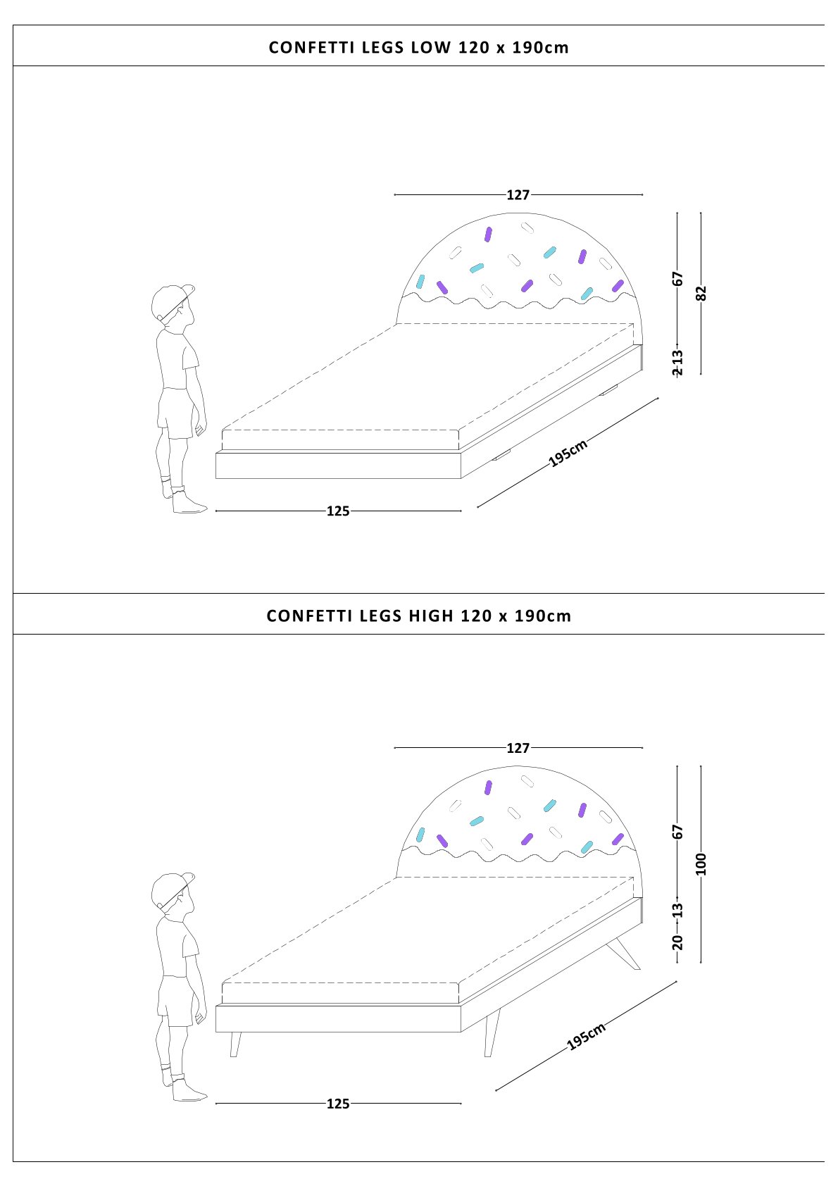 Łóżko dziecięce z zagłówkiem w kształcie lodowego deseru z posypką CONFETTI LEGS TEXTI