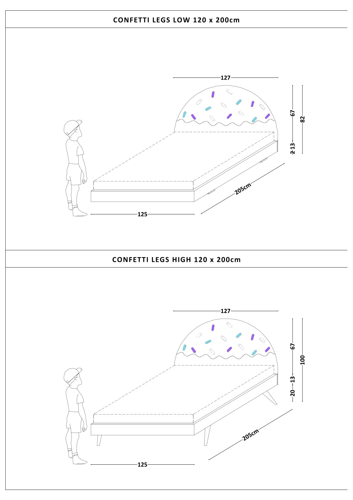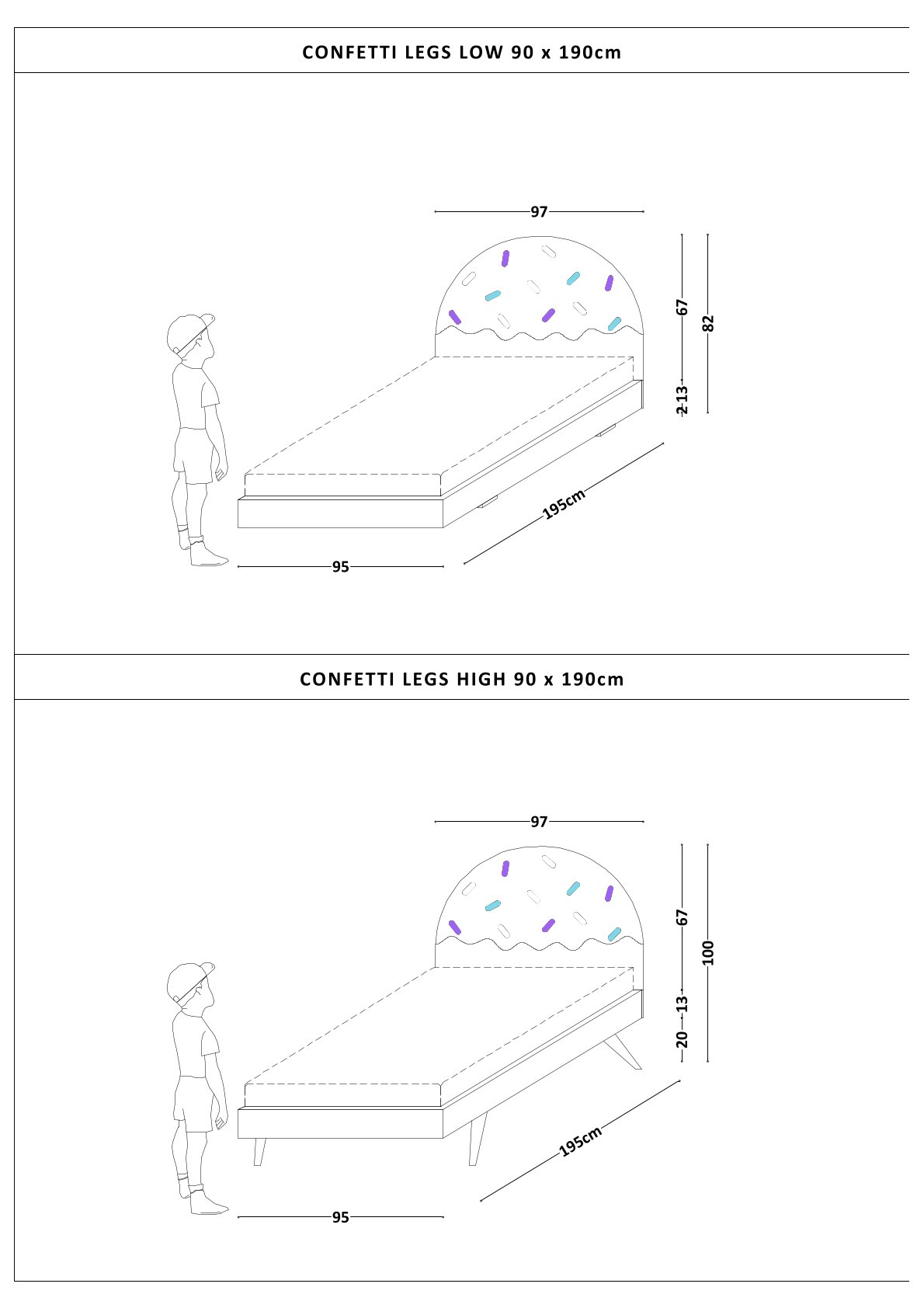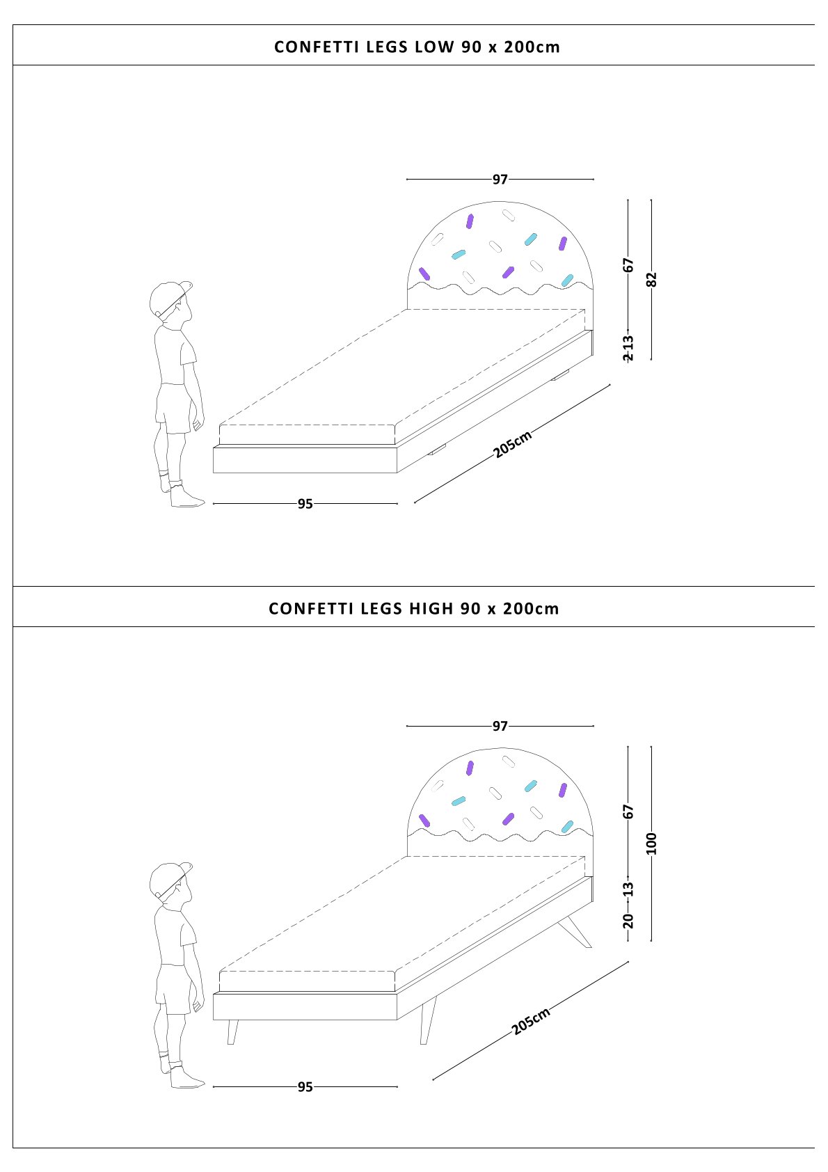 Łóżko dziecięce z zagłówkiem w kształcie lodowego deseru z posypką CONFETTI LEGS TEXTI