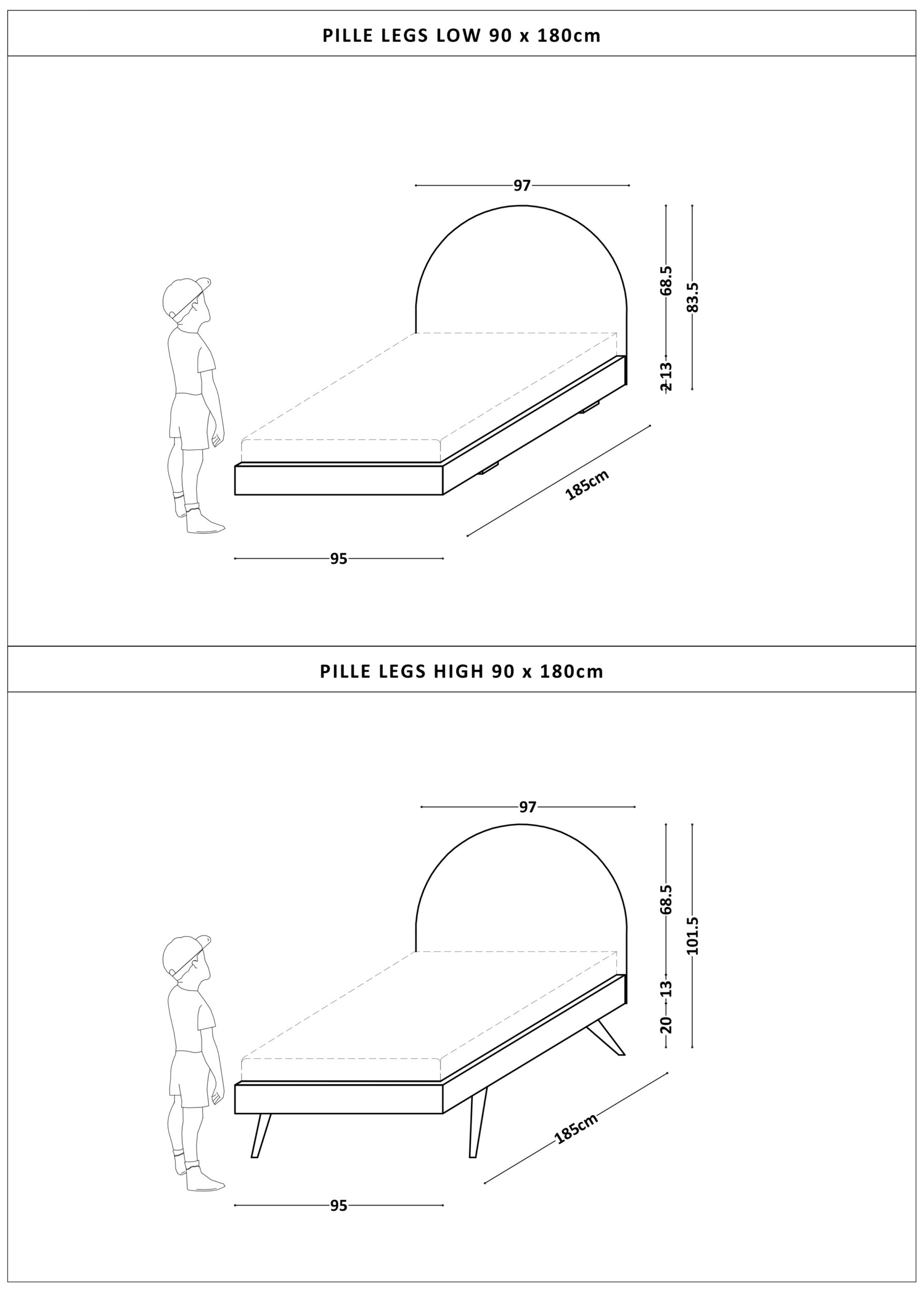 Jeżeli interesuje Państwa Łóżko Pille Półokrągłe na nóżkach w wersji z gładką ramą, zapraszamy tutaj: Łóżko PILLE PÓŁOKRĄGLE LEGS BASIC