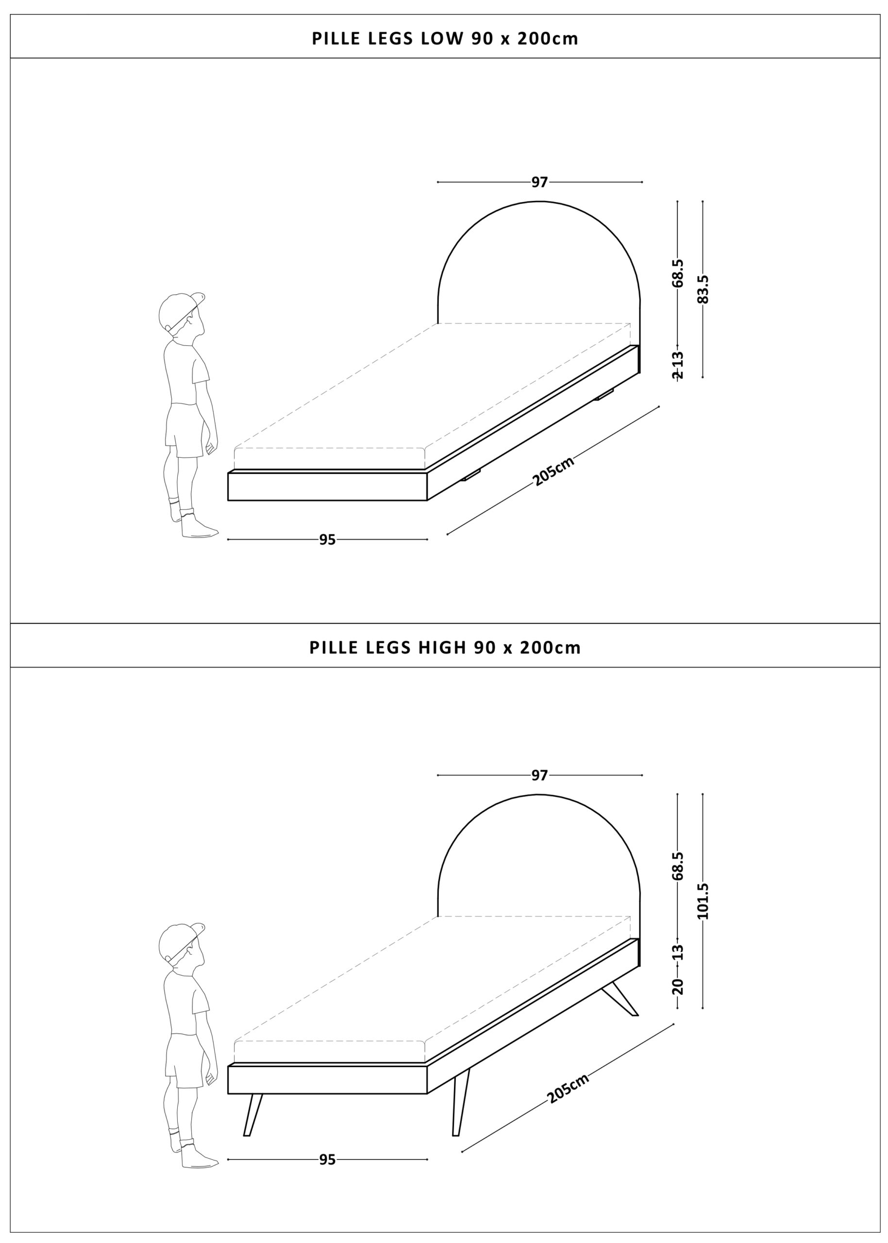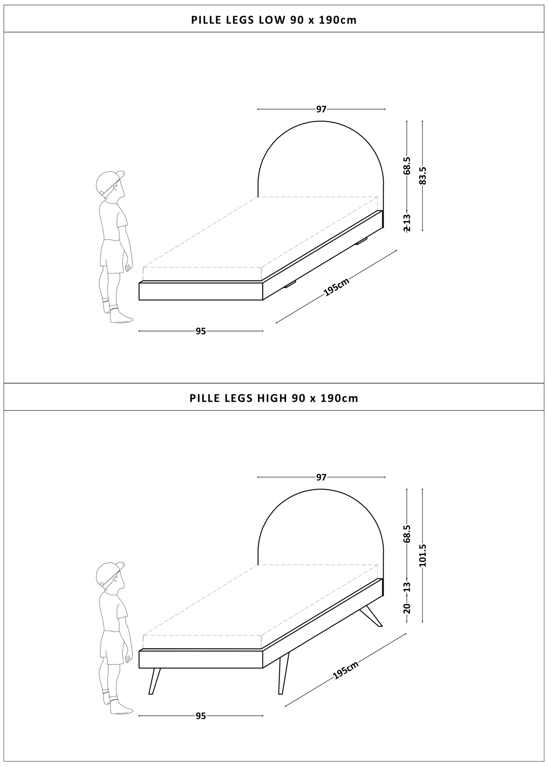 Łóżko dziecięce z półokrągłym zagłówkiem PILLE LEGS TEXTI