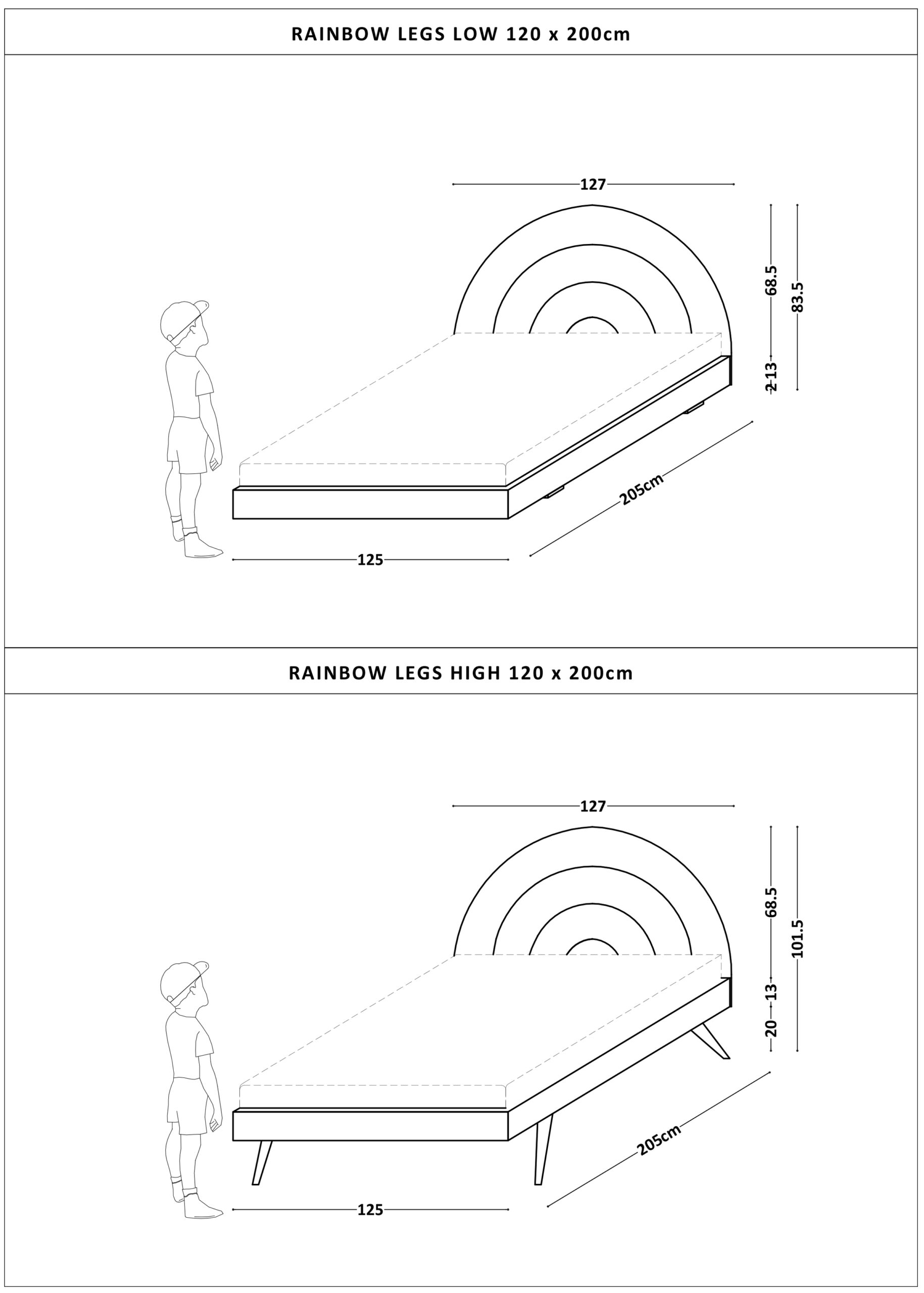Łóżko dziecięce z zagłówkiem w kształcie tęczy LEGS TEXTI