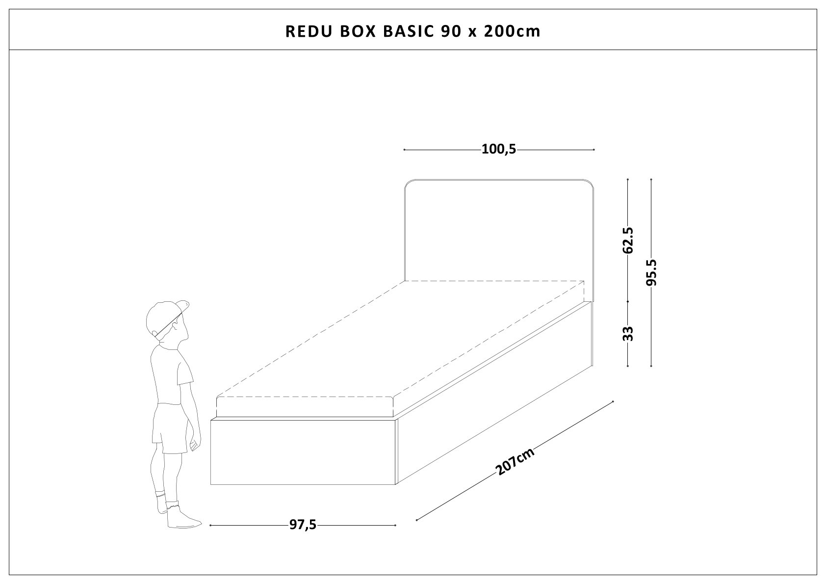 Dziecięce łóżko REDU Kids Box Basic to idealna propozycja zarówno dla dziewczynki, jak i chłopca. Tapicerowany zagłówek wprowadzi w pokoju atmosferę przytulności, a otwierana do góry pojemna, gładka skrzynia zapewni dodatkową przestrzeń do przechowywania pościeli czy też zabawek.