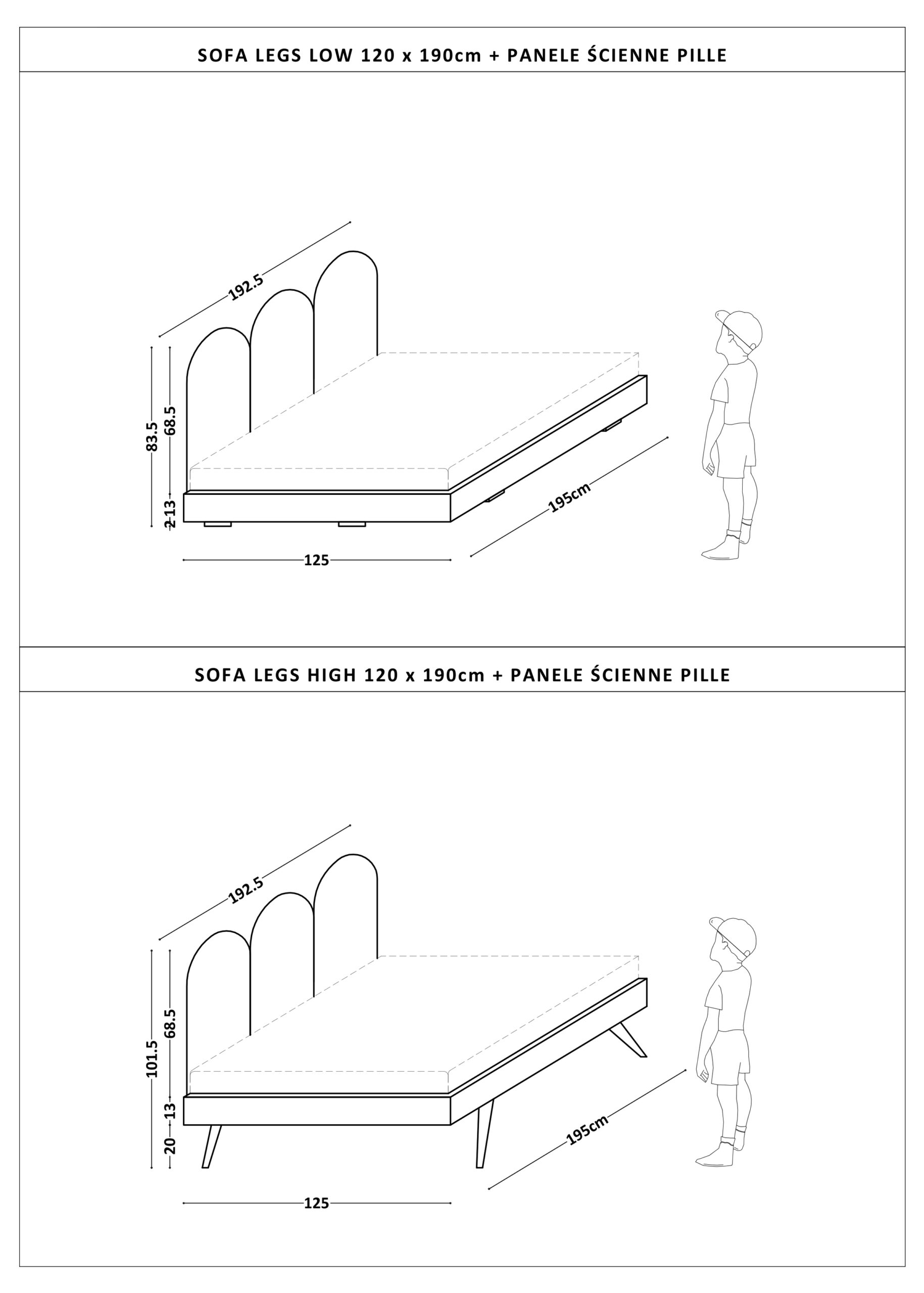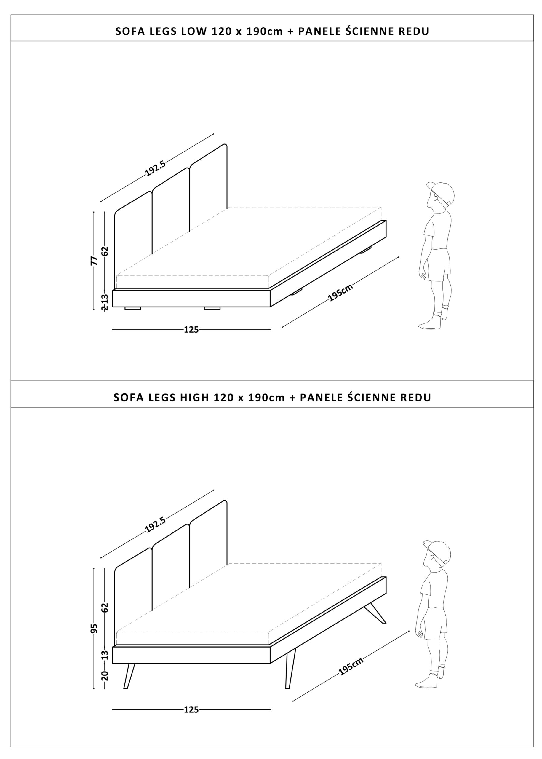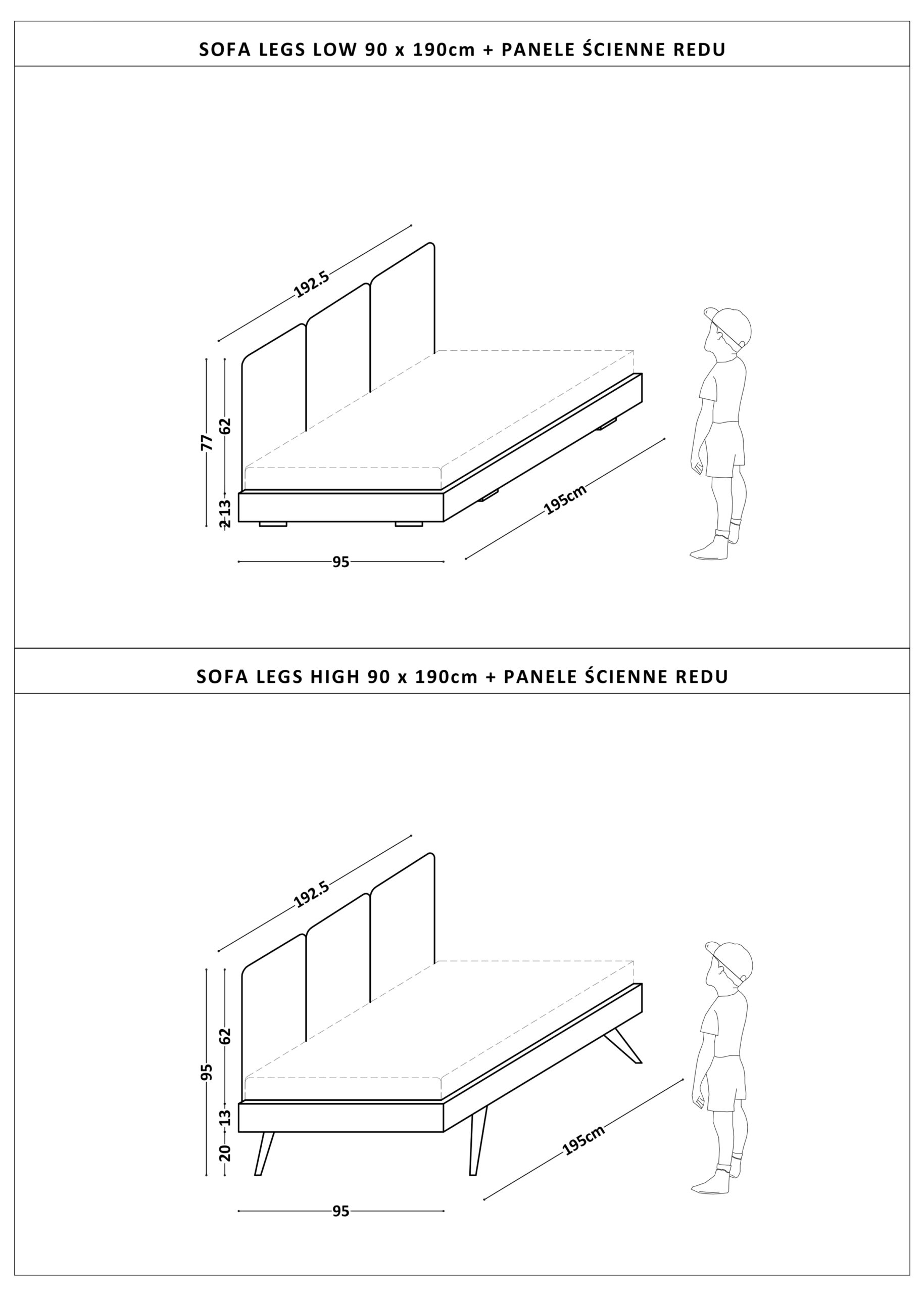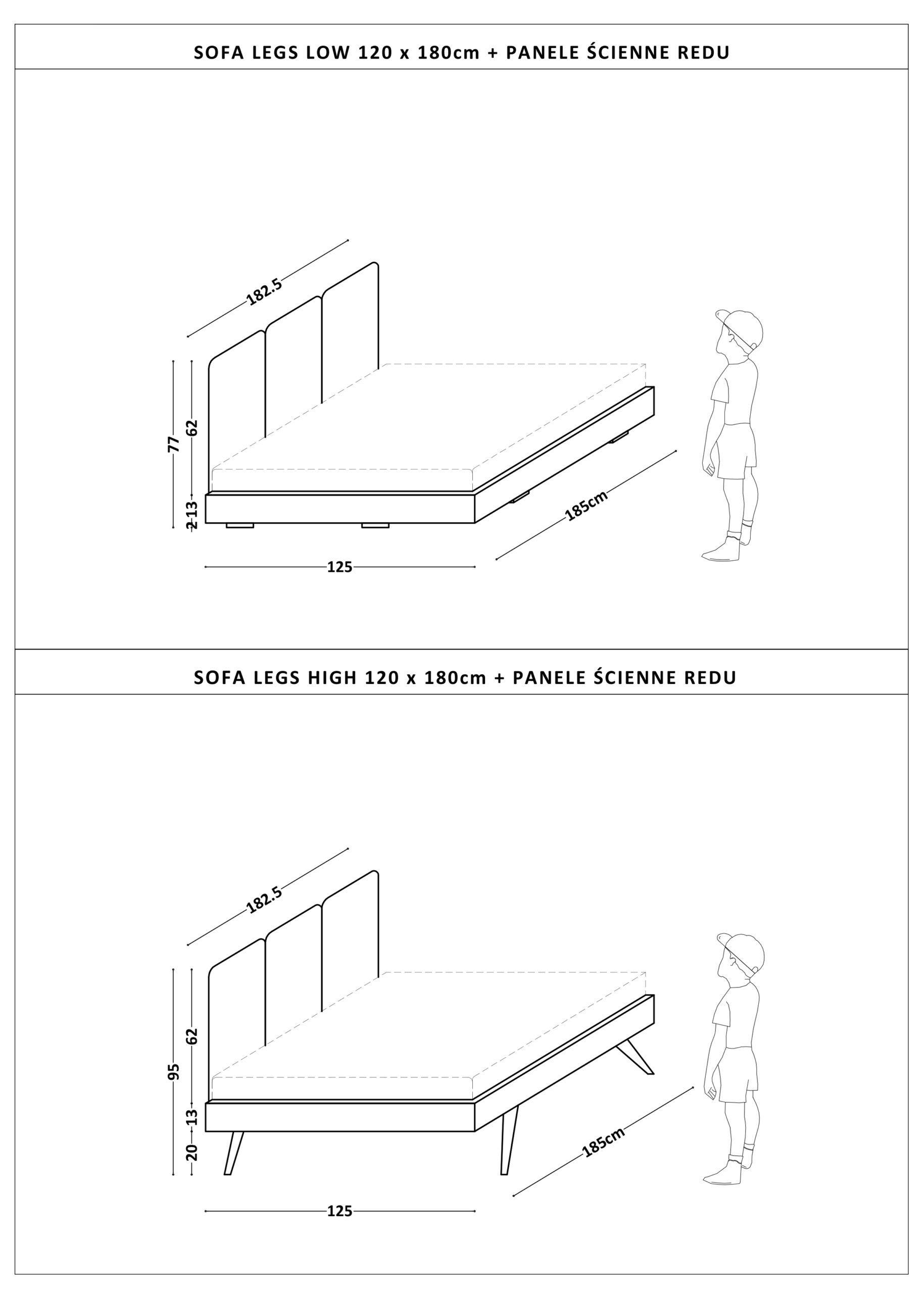 Łóżko z panelami ściennymi SOFA LEGS BASIC