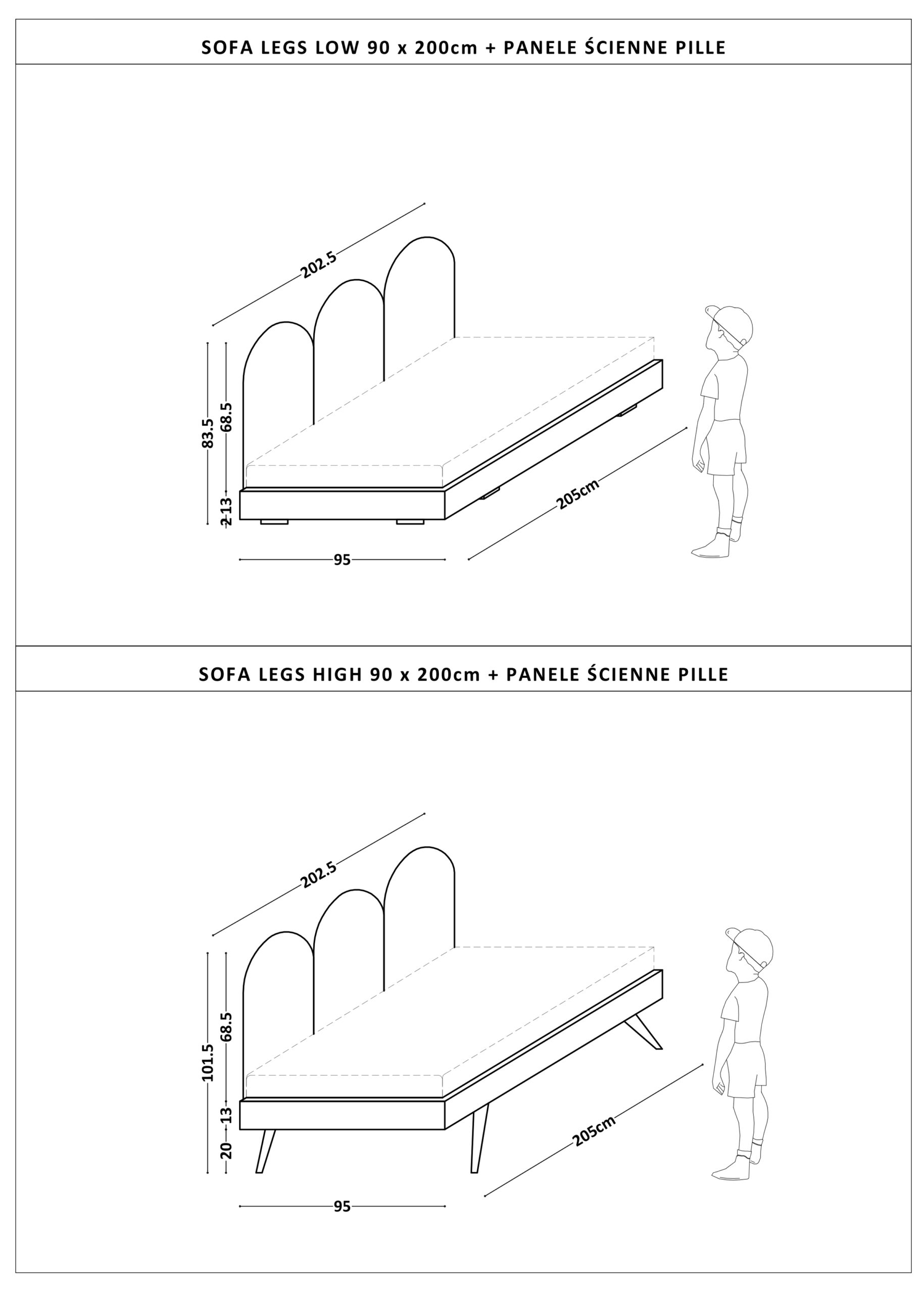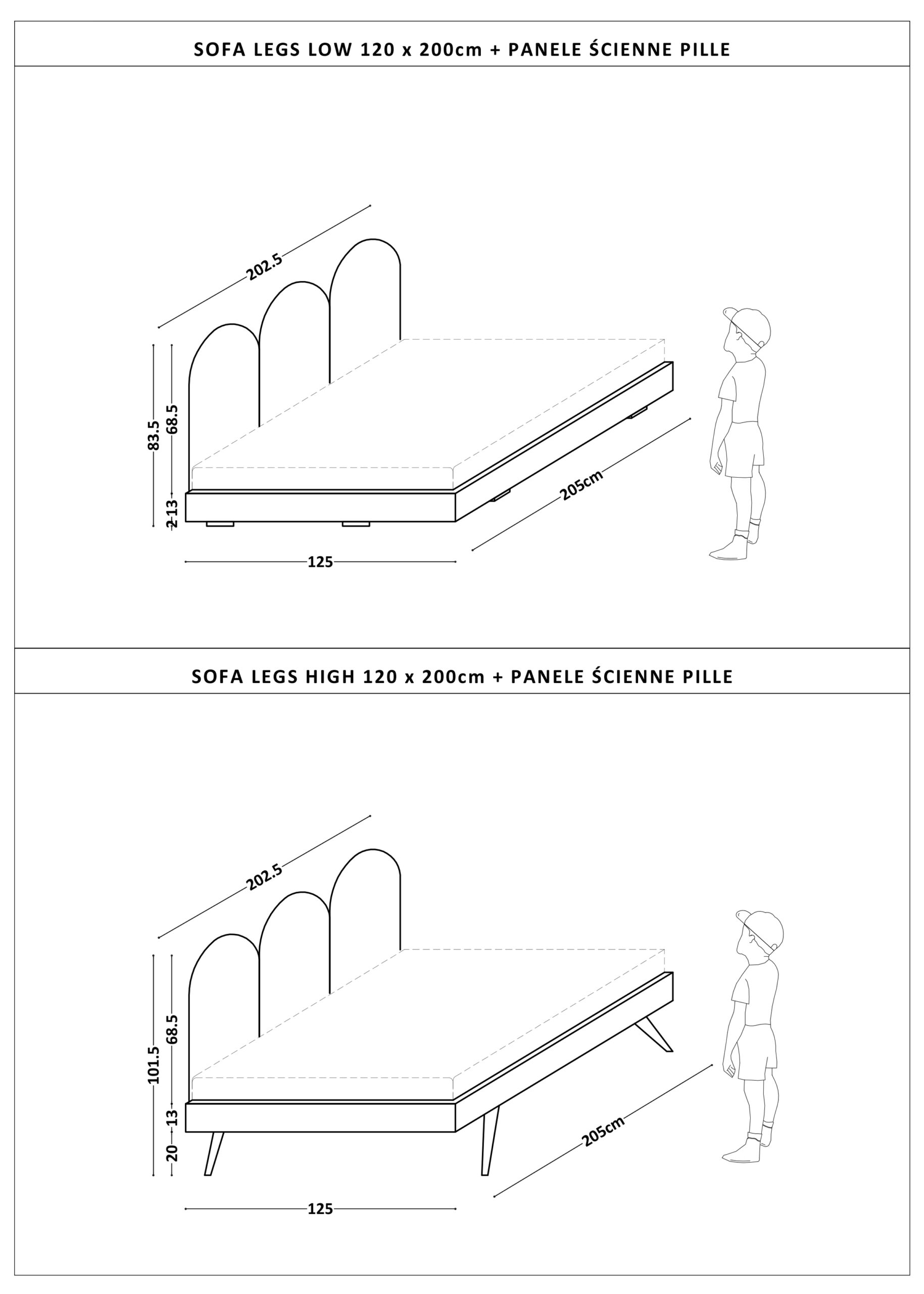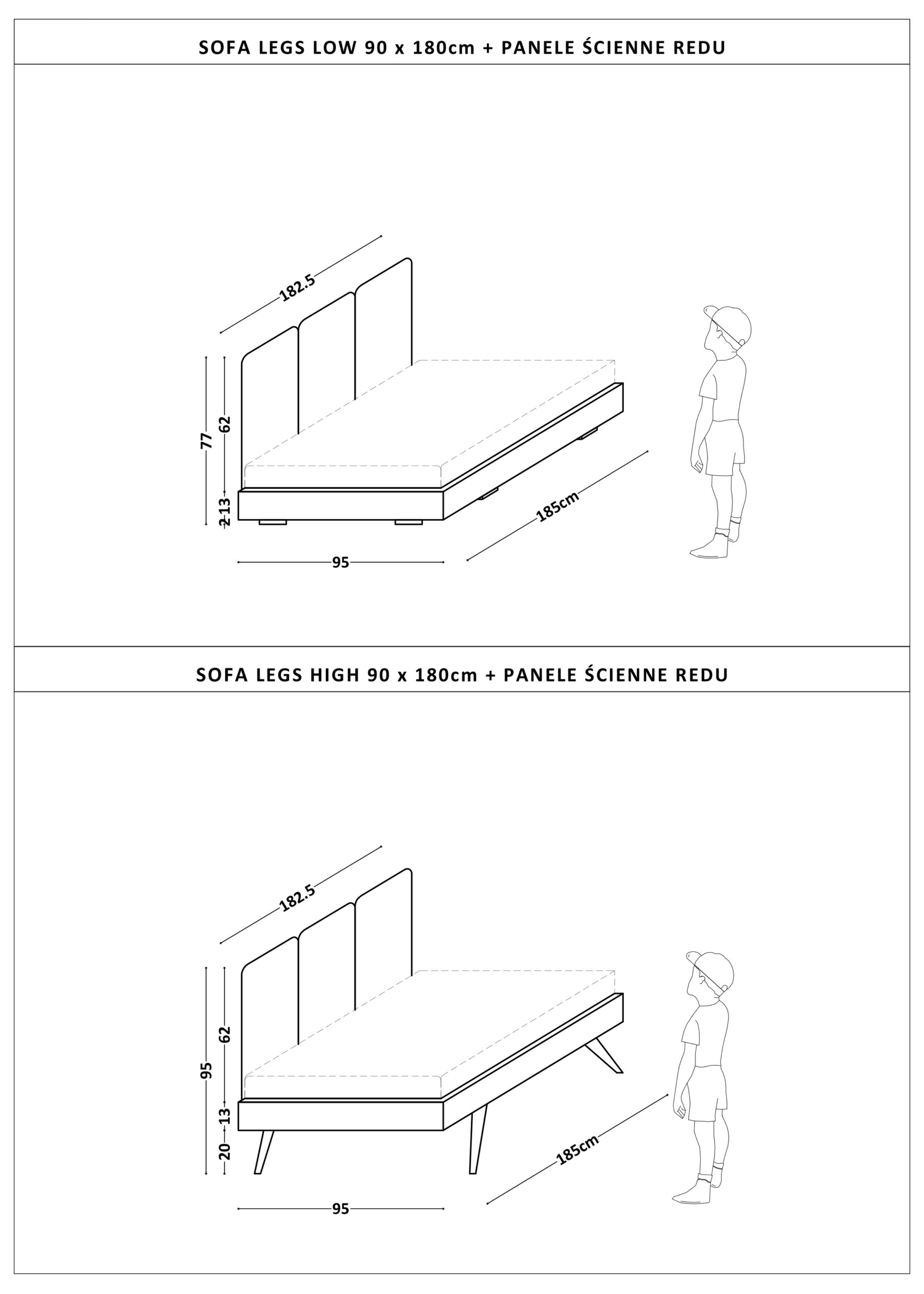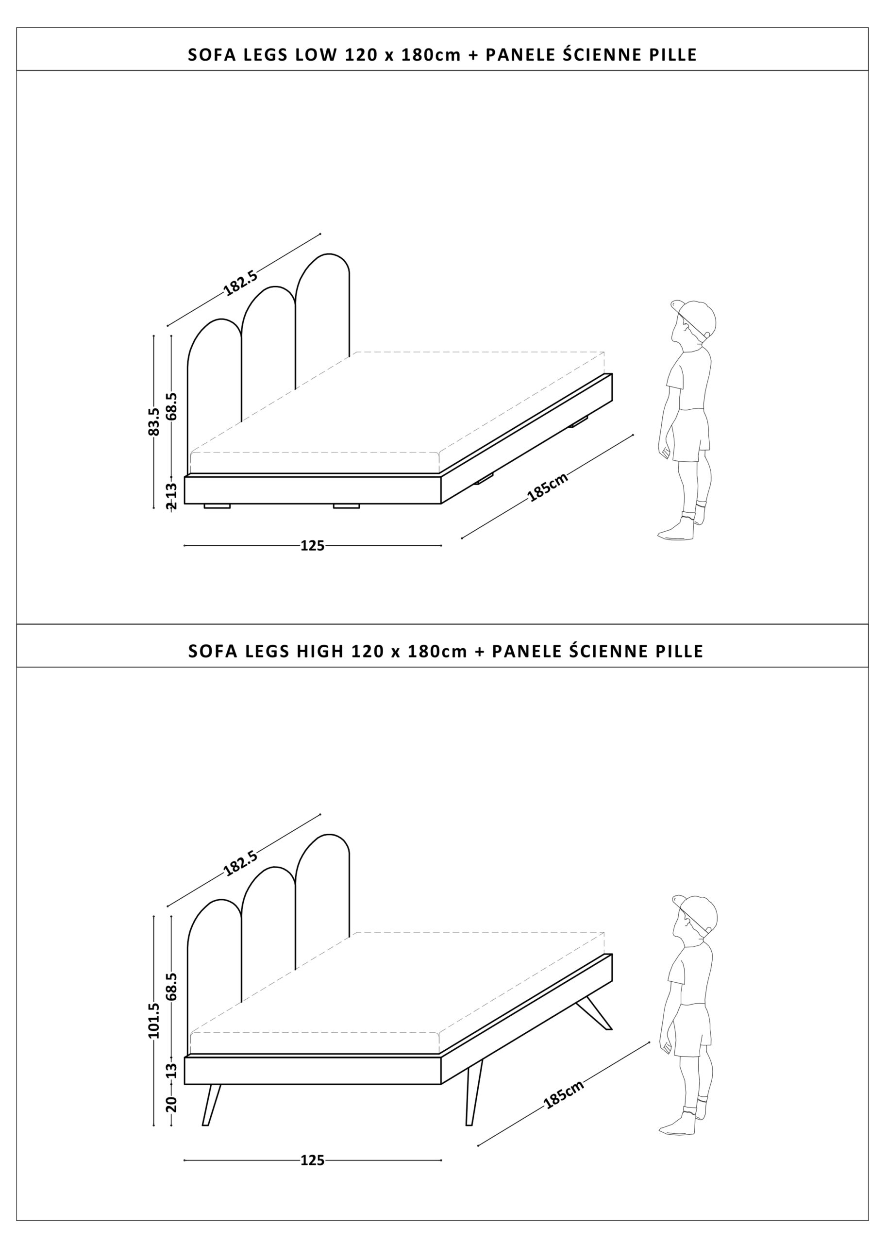 Łóżko z panelami ściennymi SOFA LEGS BASIC