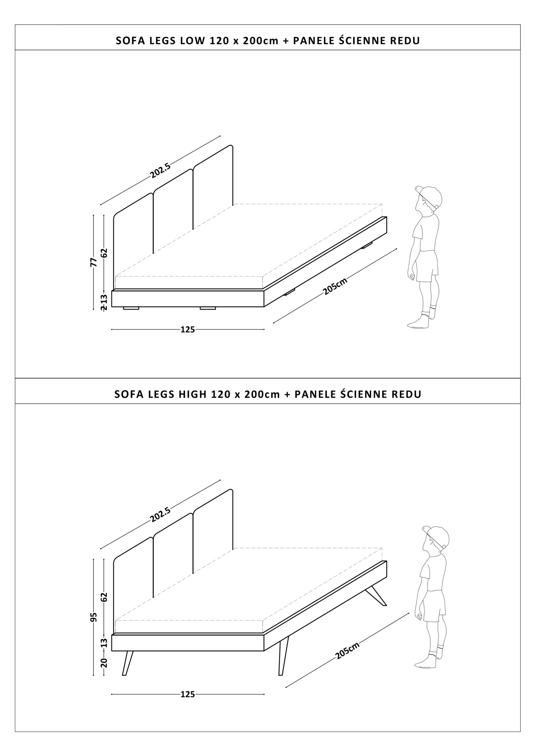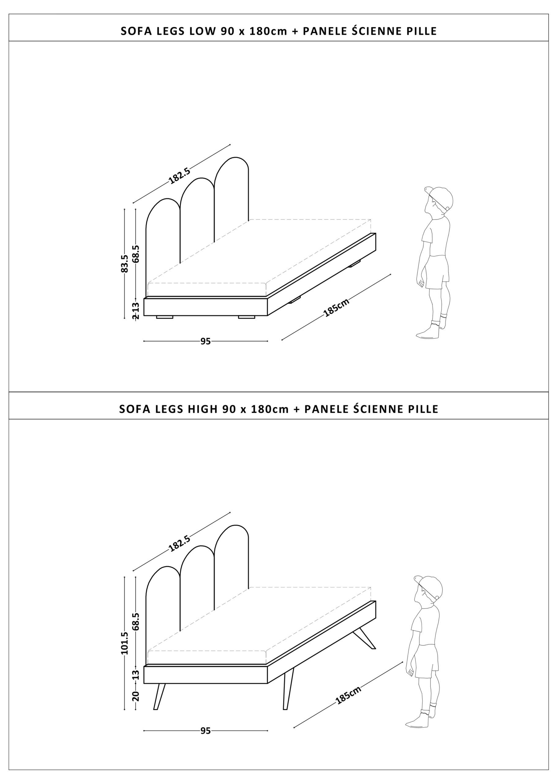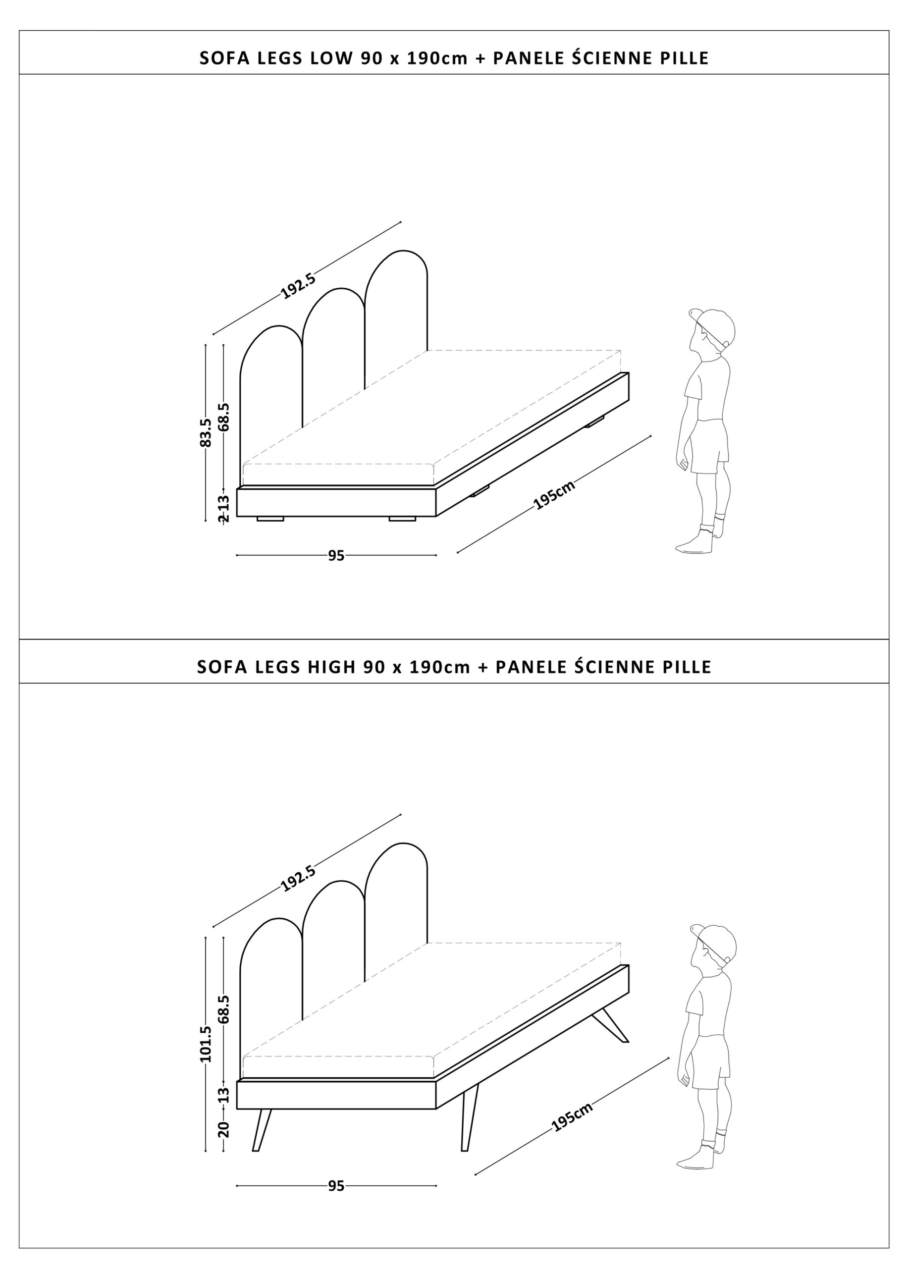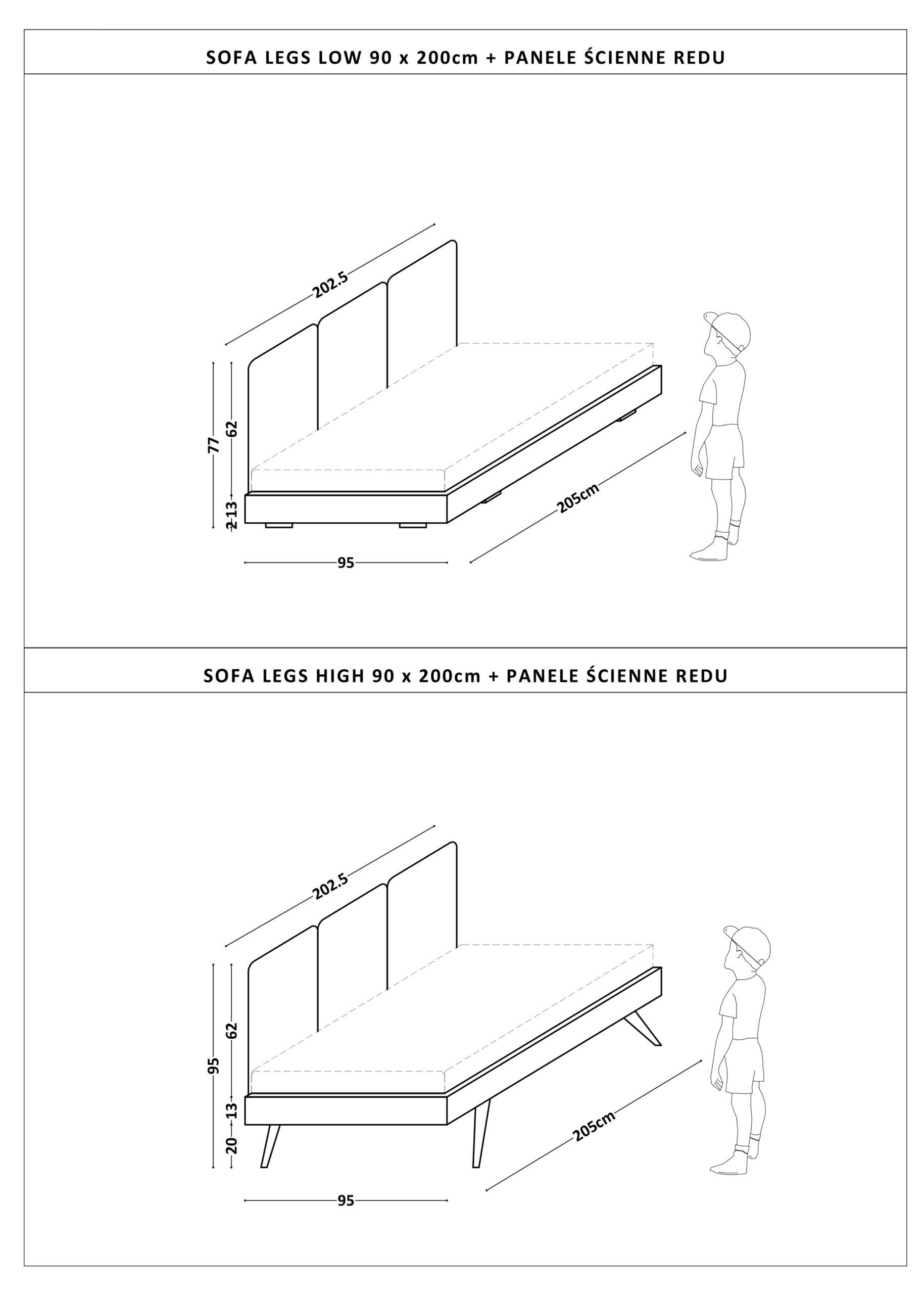 Łóżko z panelami ściennymi SOFA LEGS BASIC