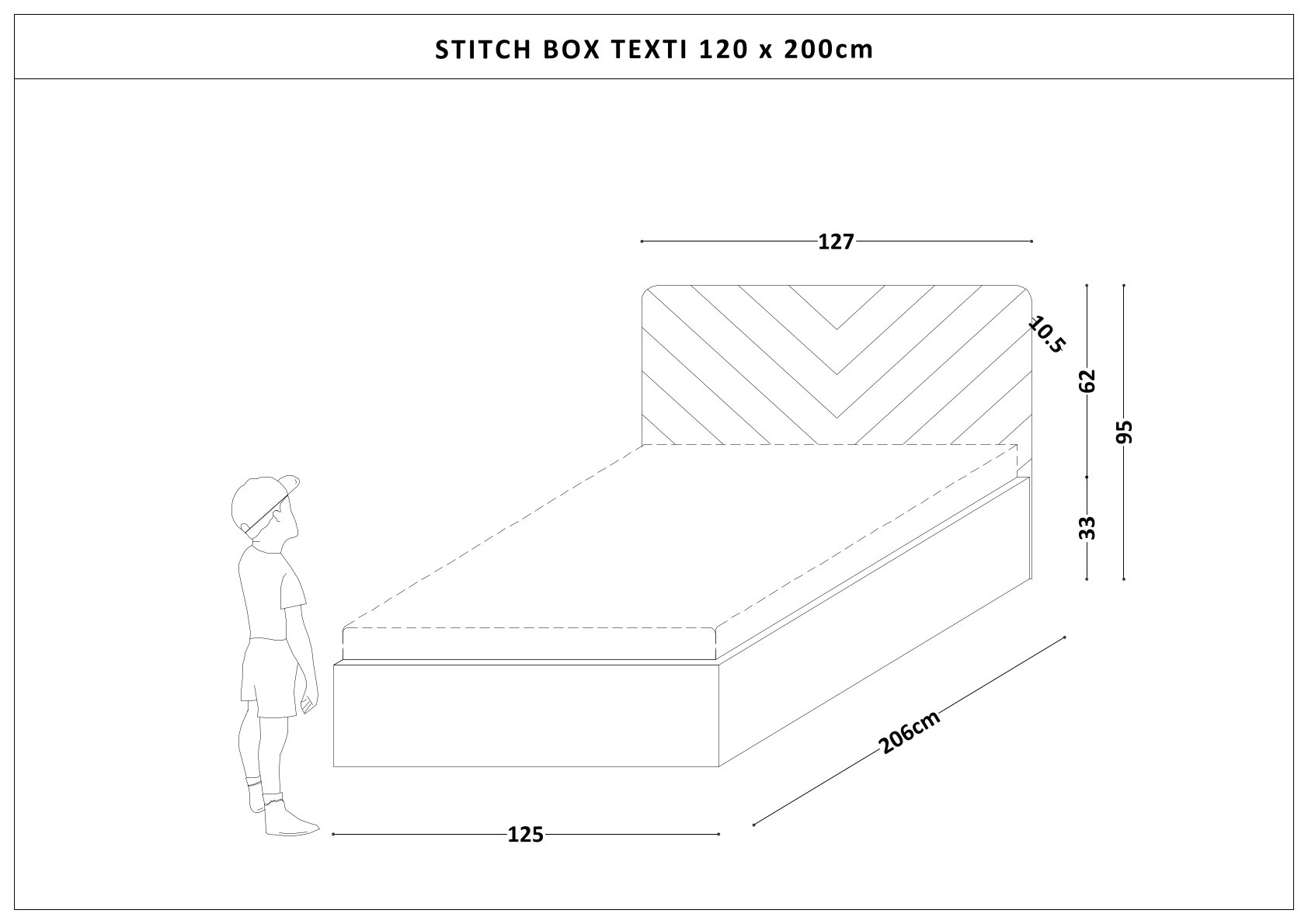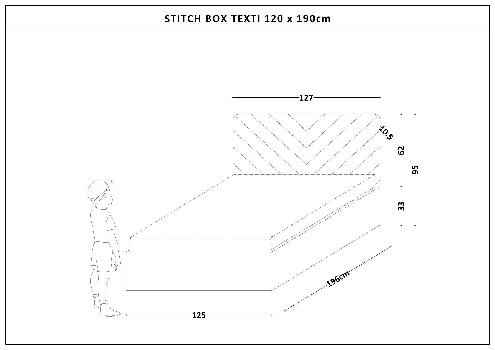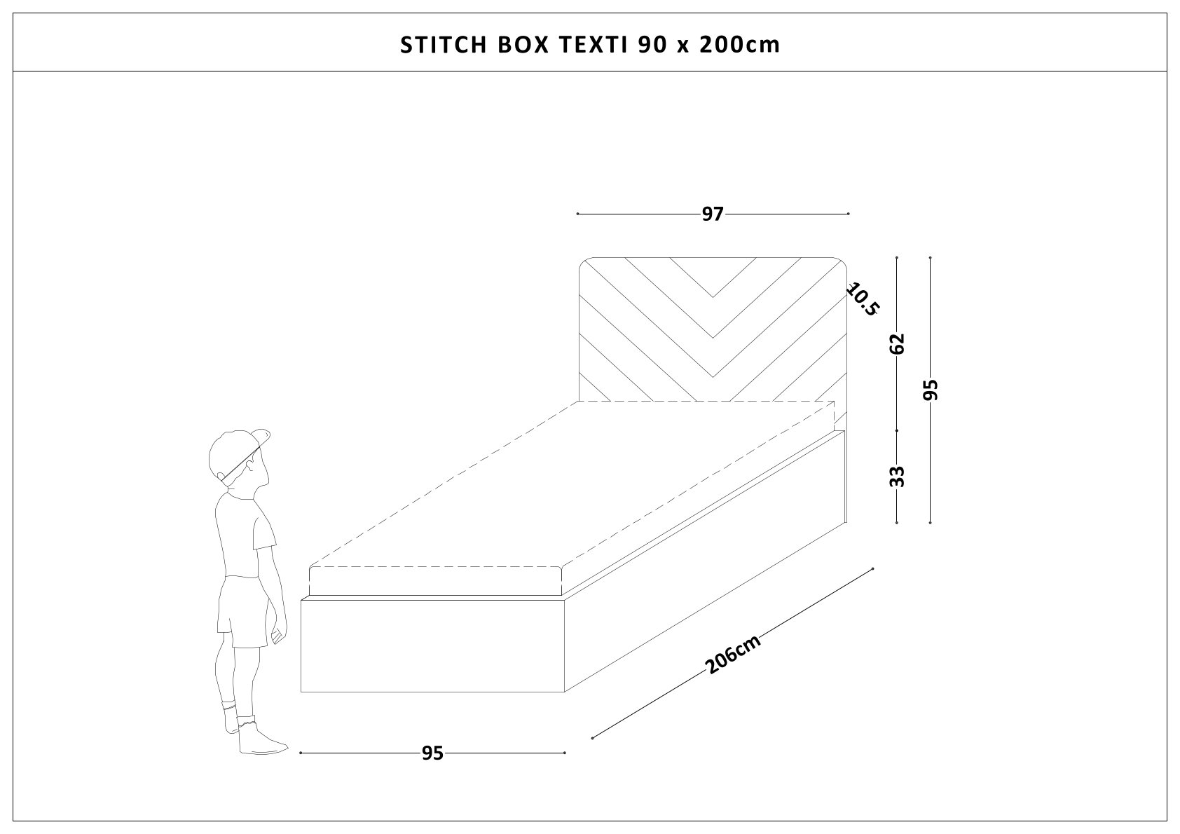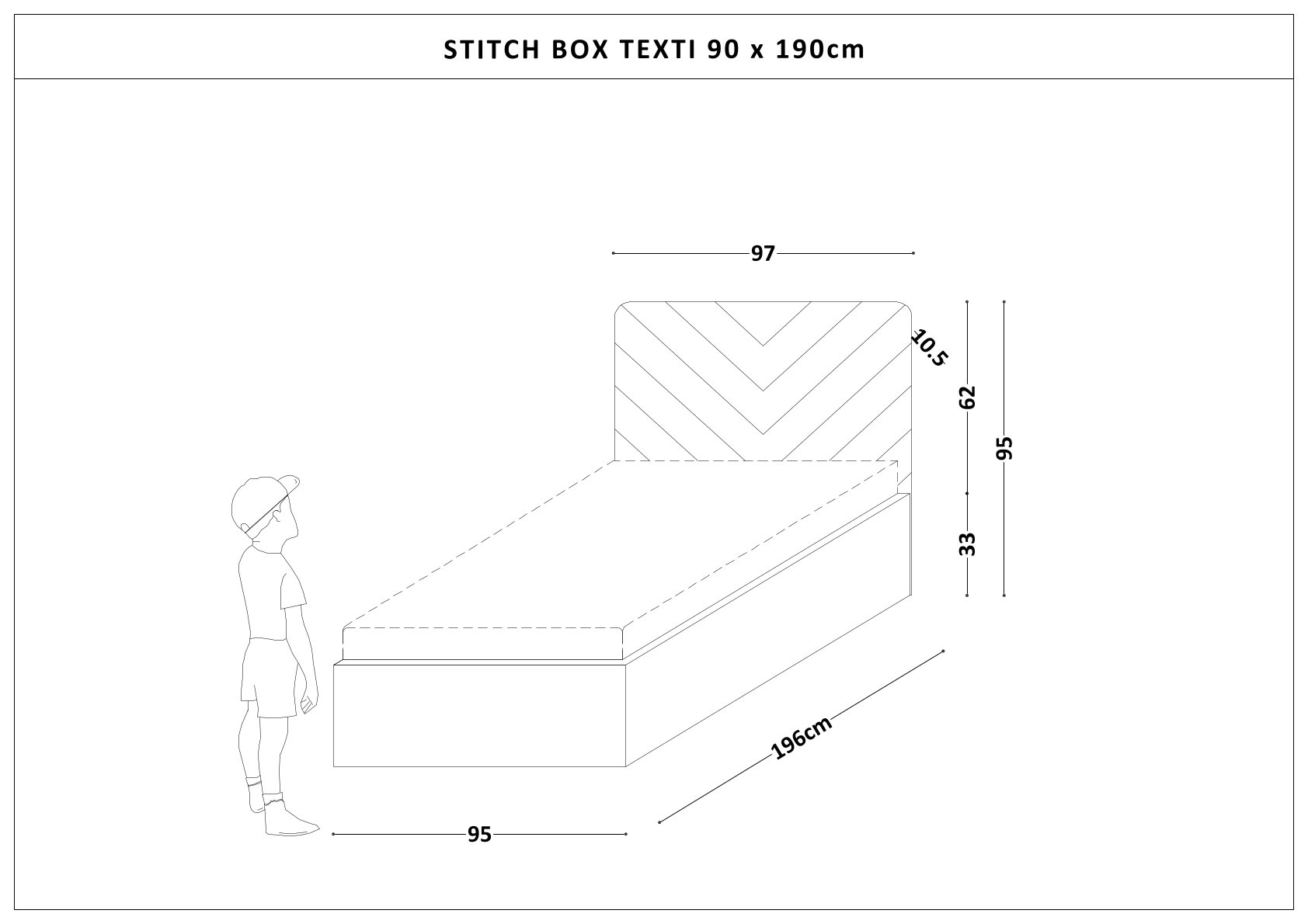 W tej ofercie prezentujemy łóżko dziecięce Box Texti w wersji z pojemną, tapicerowaną skrzynią. Skrzynia otapicerowana jest tym samym materiałem, co zagłówek łóżka. W zestawie z łóżkiem otrzymują Państwo najwyższej jakości stelaż, wykonany z drewnianych, bardzo elastycznych listewek, które ,,pracują” razem z materacem i zapewniają komfort podczas snu.