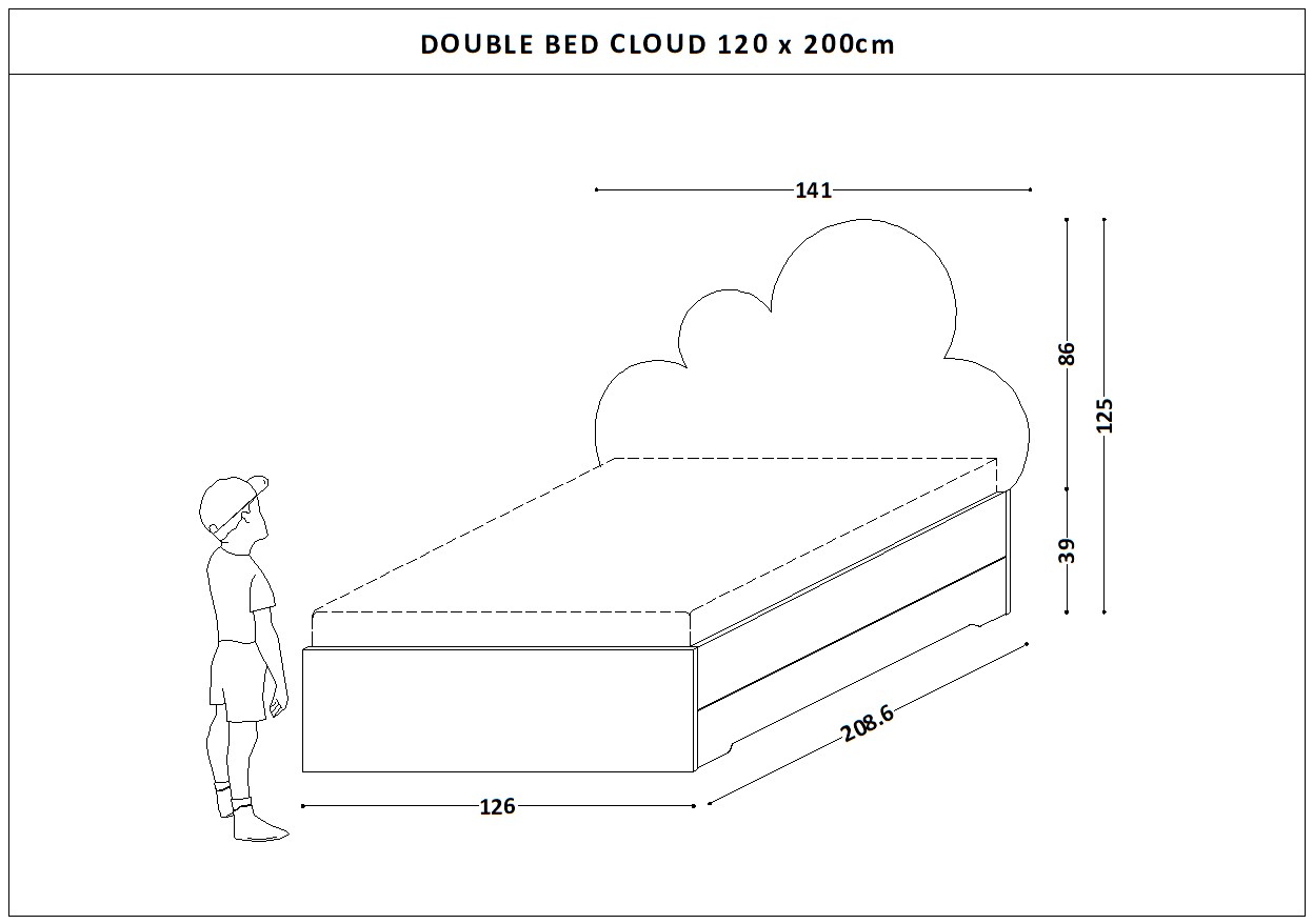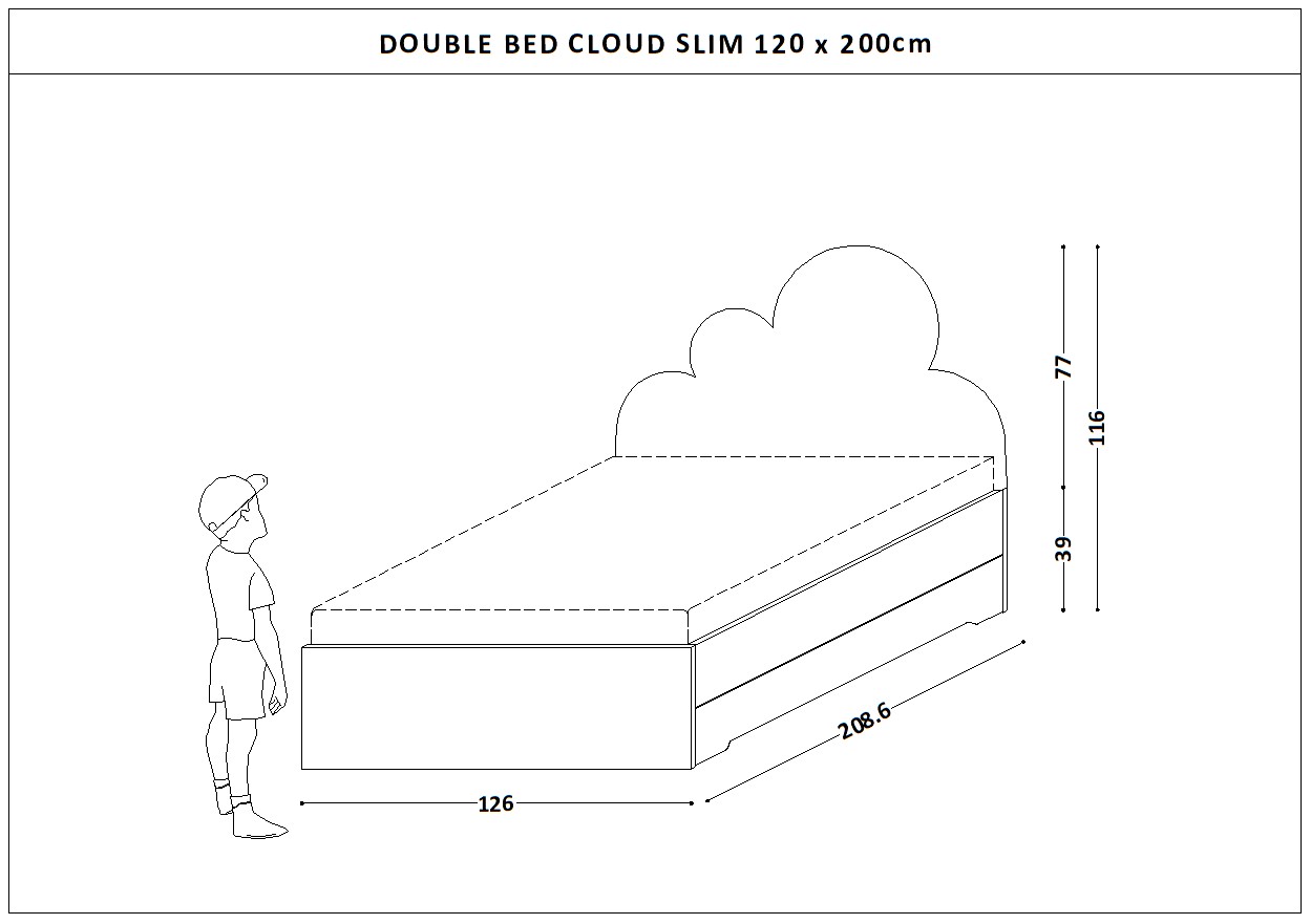 Podwójne Łóżko Double Bed z zagłówkiem w kształcie Chmurki.