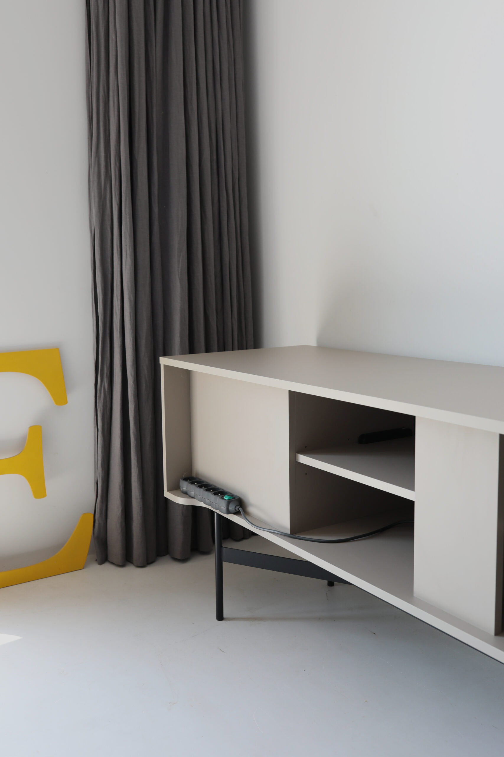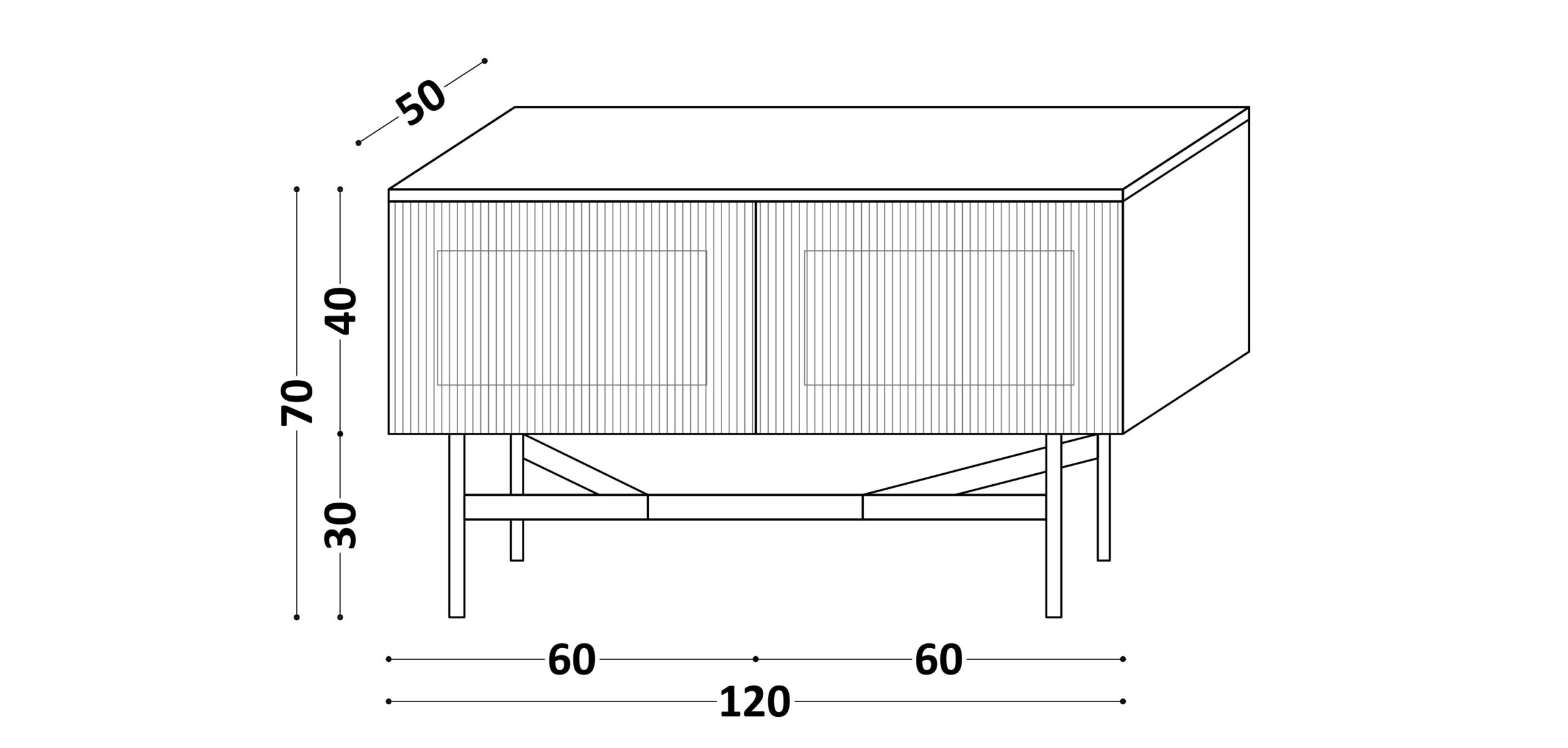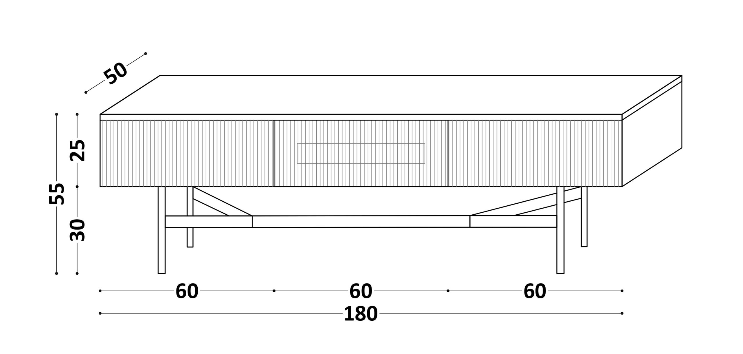 Przygotowaliśmy specjalne rozwiązania na problemy spotykane w szafkach telewizyjnych. 1. Co jeśli chcesz dosunąć szafkę do samej ściany, ale masz grubsze listwy przypodłogowe? Rozwiązanie: Nóżki naszej szafki Line są cofnięte w stosunku do korpusu, abyś bez problemu dosunął ją do ściany.