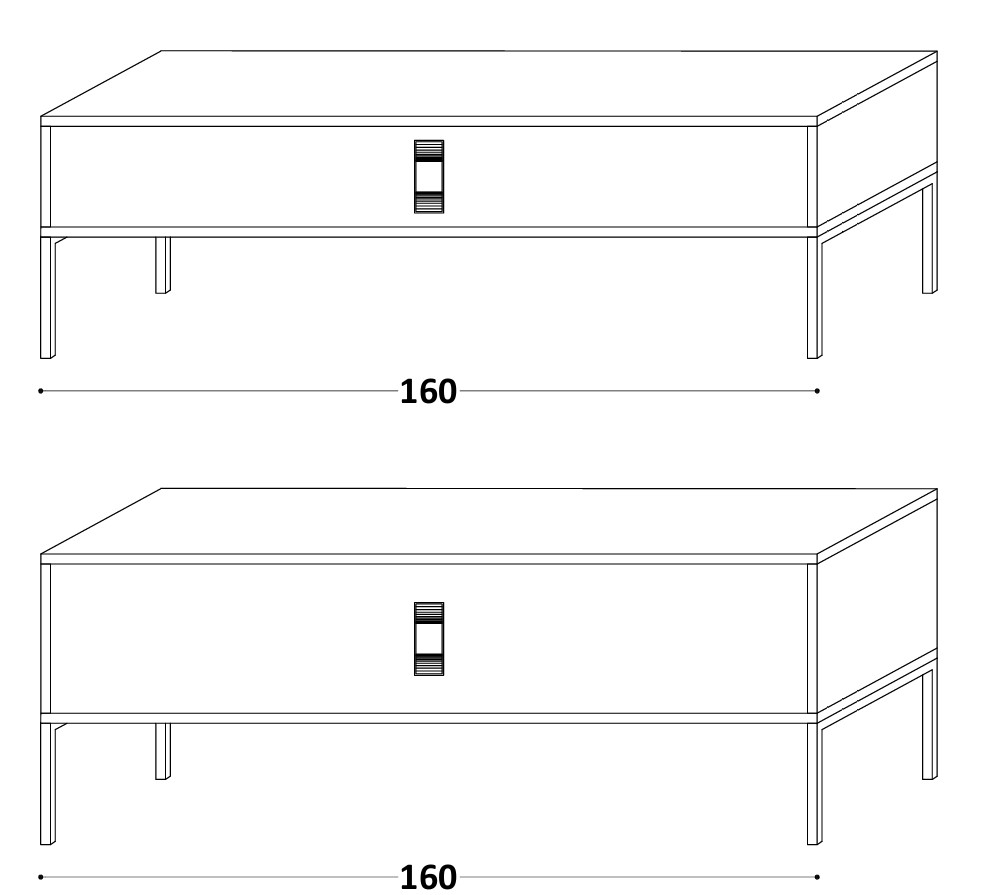 Każdy z powyższych występuje w podstawowych wymiarach: -szerokość 160, głębokość 50 cm. Plecy szafki są wyposażone w przelotkę na przewody: