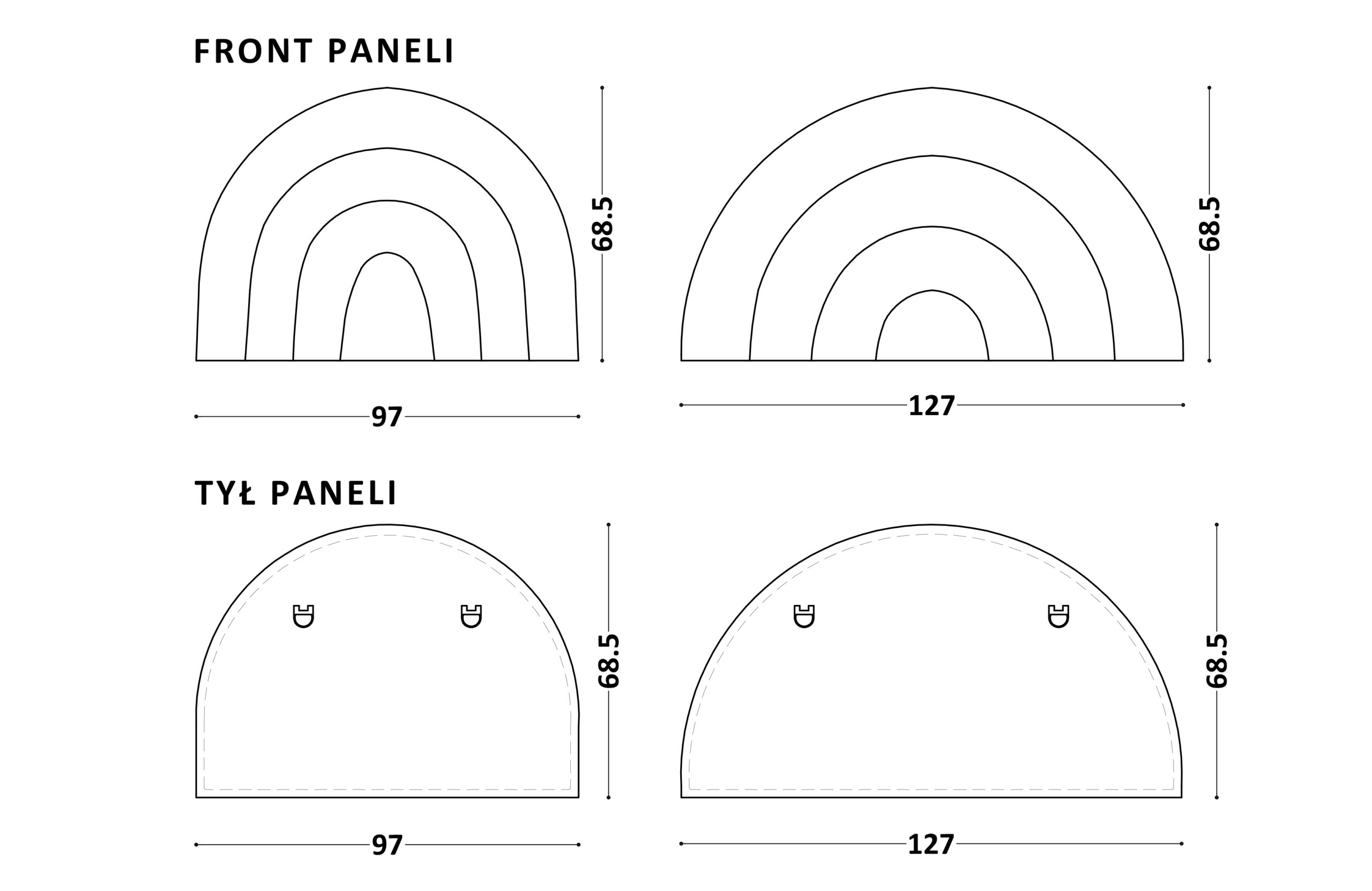 Tapicerowany zagłówek w kształcie kolorowej tęczy. Może służyć jako zagłówek do dowolnego łóżka lub jako niezależny panel ścienny.